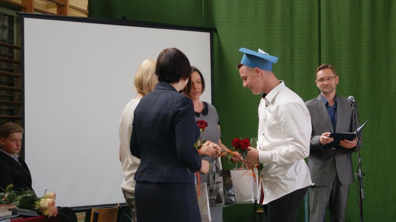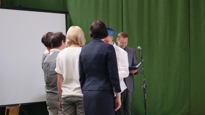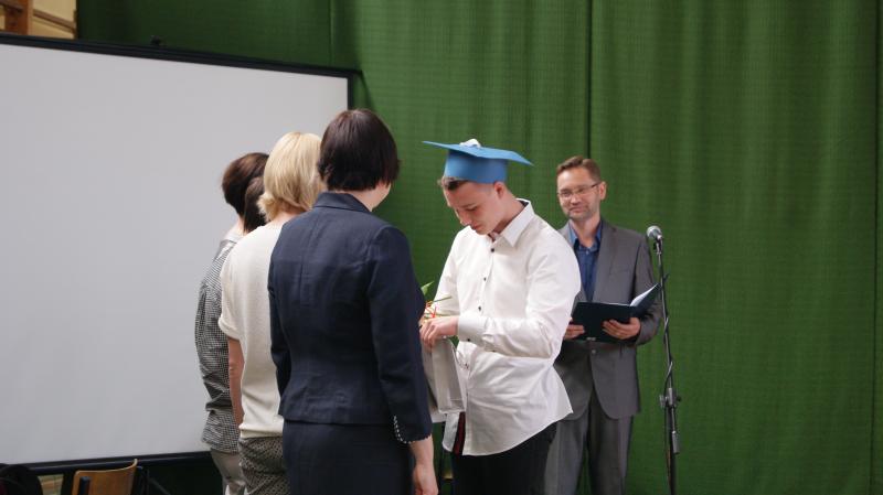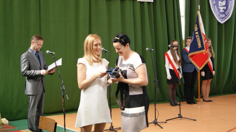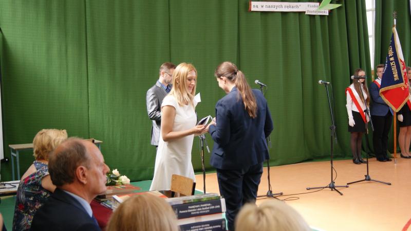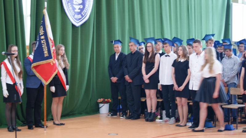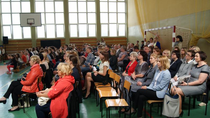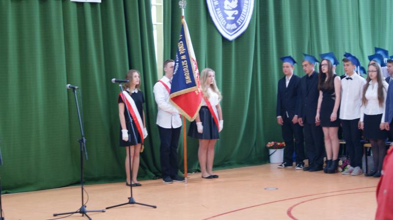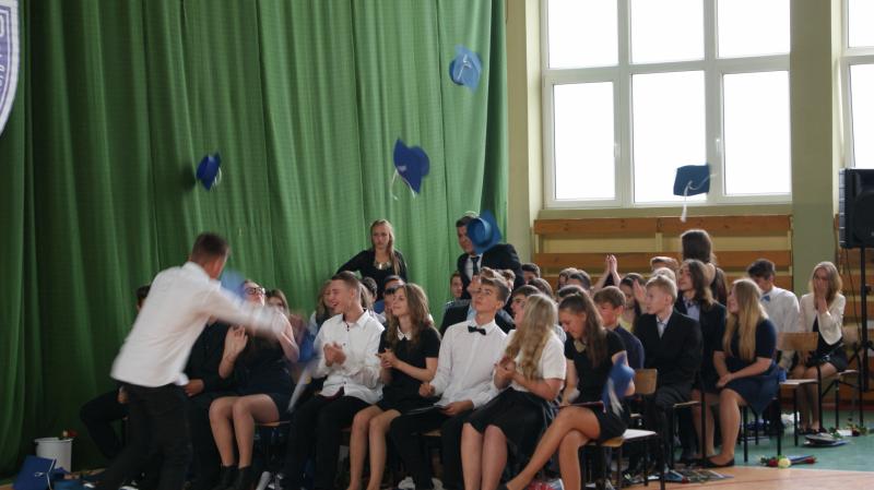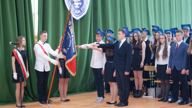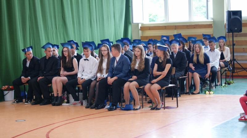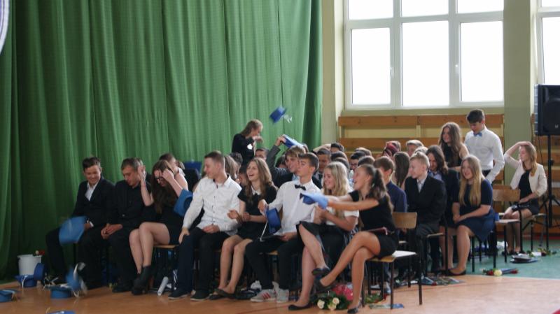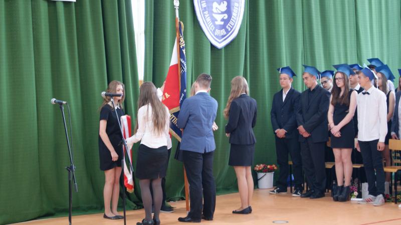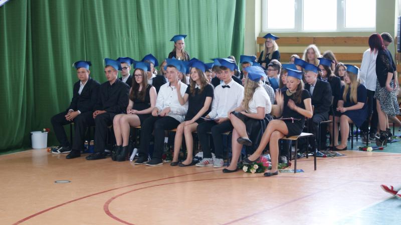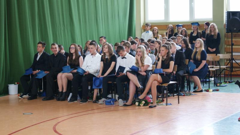 24 czerwca pożegnaliśmy naszych trzecioklasistów. Wszyscy spotkali się w sali gimnastycznej, gdzie gimnazjalistów, nauczycieli i zaproszonych gości powitała dyrektor szkoły Sylwia Owsińska. Zgodnie z tradycją odbyło się przekazanie sztandaru szkolnego oraz władzy samorządowej młodszym kolegom. Po ślubowaniu uczniom zostały wręczone kopie świadectw a grupa uczniów najzdolniejszych oraz zaangażowanych w życie społeczności szkolnej, została wyróżniona nagrodami książkowymi oraz sprzętem sportowym.