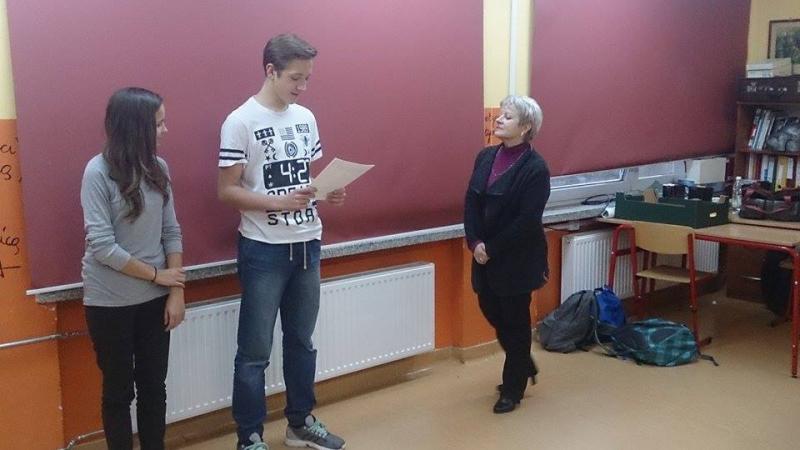 1 grudnia nasi gimnazjaliści zaprezentowali swoje talenty recytatorskie . Do Szkolnego Konkursu Recytatorskiego zgłosiło się niewiele osób ( tylko 5). Wszystkim należą się gratulacje za odwagę podjęcia trudu publicznego wystąpienia i dobre przygotowanie tekstów do prezentacji.