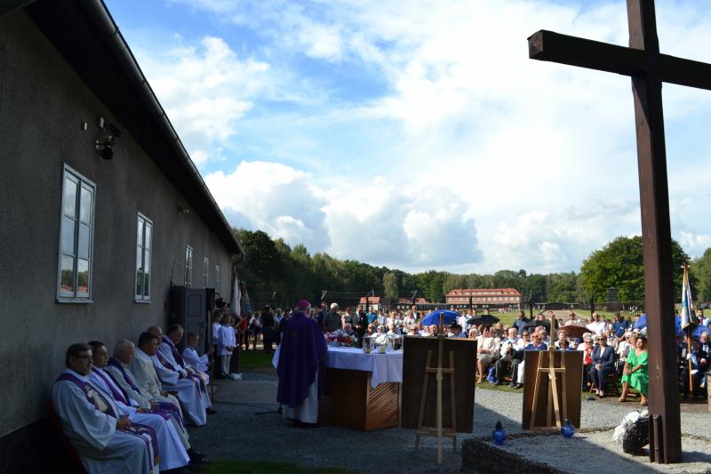 Na terenie Muzeum Stutthof, obok budynku dawnego krematorium uczestniczyliśmy w Mszy Świętej w intencji ofiar byłego obozu Stutthof, której przewodniczył biskup diecezji elbląskiej Jacek Jezierski.