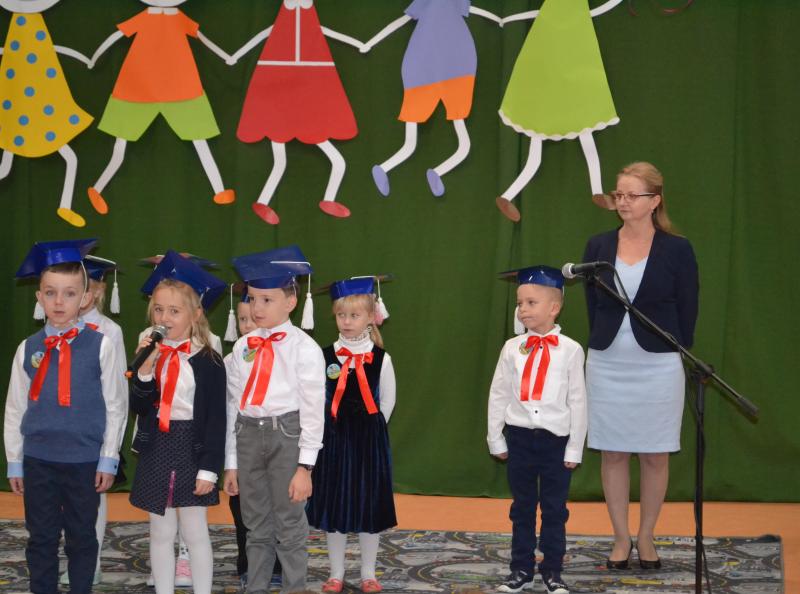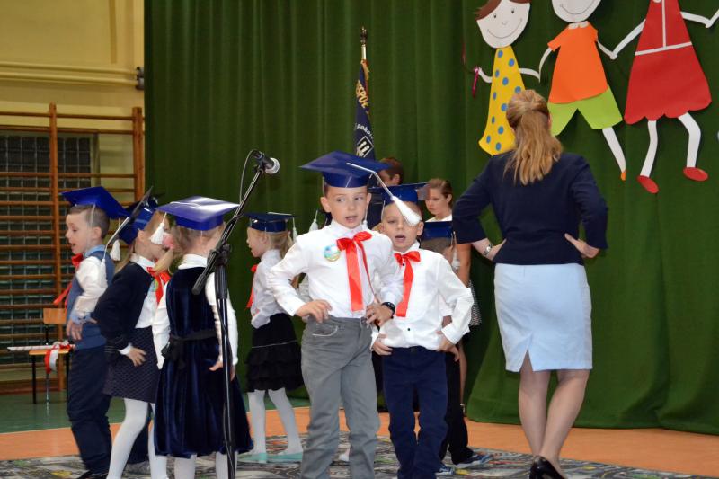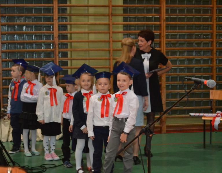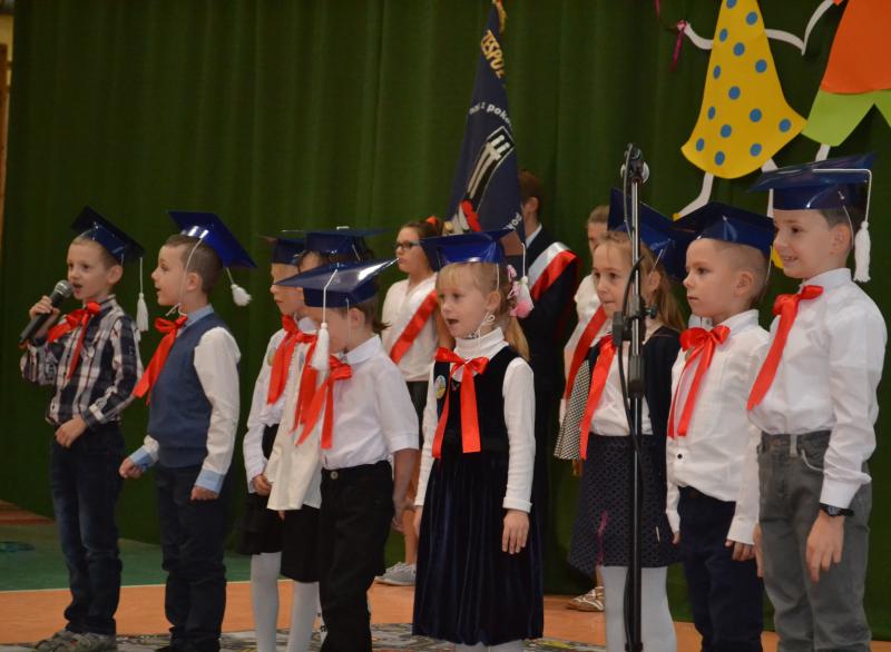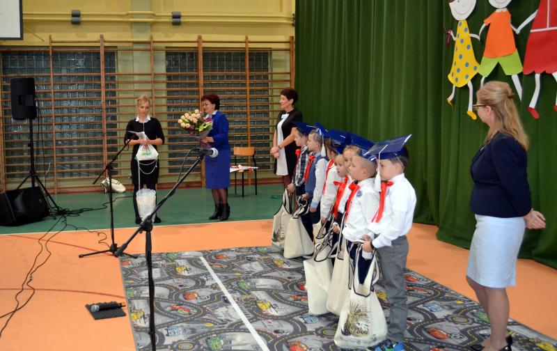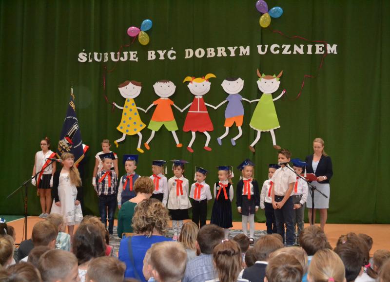 Panie dyrektor: Sylwia Owsińska i Bożena Nowak pasowały dzieci na uczniów w obecności znamienitych gości: Wójta Gminy pana Jakuba Farinade, Przewodniczącej Rady Gminy pani Walerii Banasik, przedstawicieli Banku Spółdzielczego w Stegnie oraz zaproszonych rodziców bohaterów tej uroczystości i kolegów z klas II i III, a także dzieci z przedszkola. W części artystycznej uczniowie udowodnili, że potrafią pracować, śpiewać i tańczyć. To był ich „egzamin”, który zdali na szóstkę. Następnie odbyło się uroczyste ślubowanie. Po odczytaniu jego treści złożyli przysięgę na sztandar szkoły. Dzieci obiecały uczyć się pilnie, być grzecznymi, szanować dobre imię szkoły, być dobrym Polakiem.