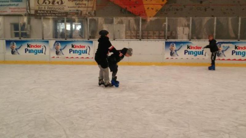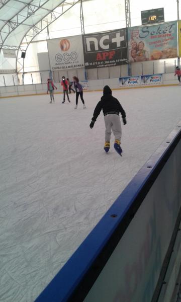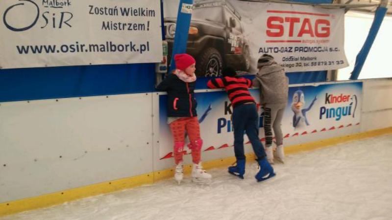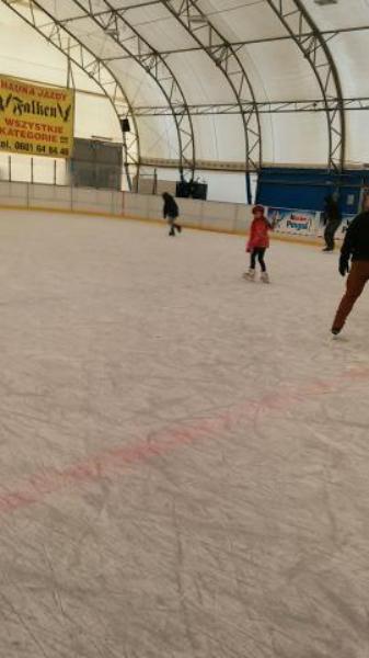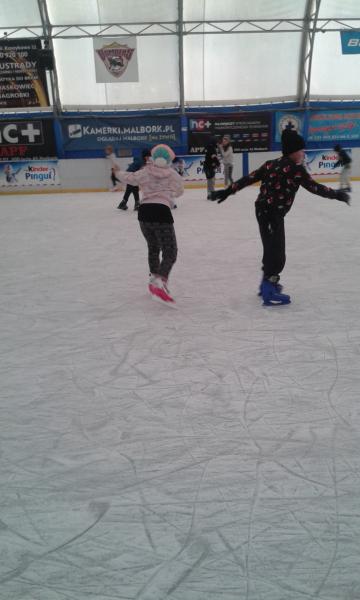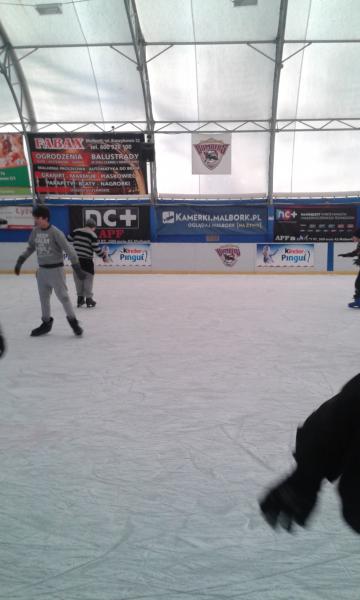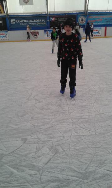 Rodzice uczniów klasy IV A z okazji Mikołajek zaprosili swoje pociechy na lodowisko do Malborka. Dla znacznej części uczniów był to pierwszy wyjazd na lodowisko i pierwsza jazda na łyżwach. Wszyscy doskonale bawili się i po paru upadkach na taflę oraz „okrążeniach” lodowiska blisko balustrady jeździli coraz pewniej a uśmiechy na twarzach były wyrazem znakomitej zabawy. |
