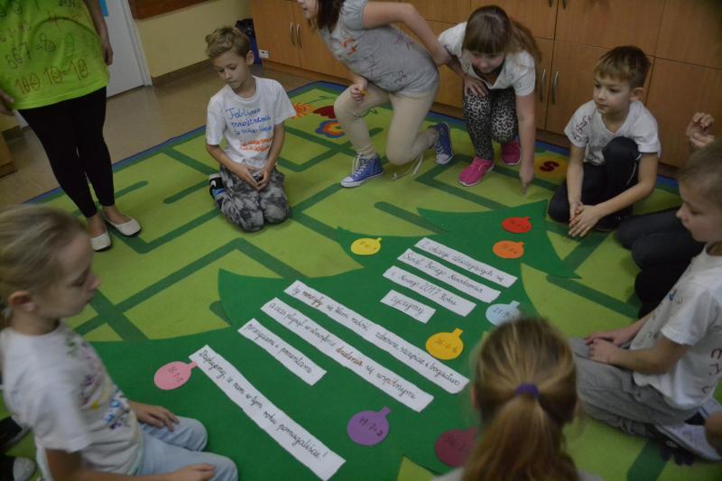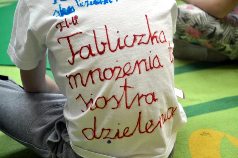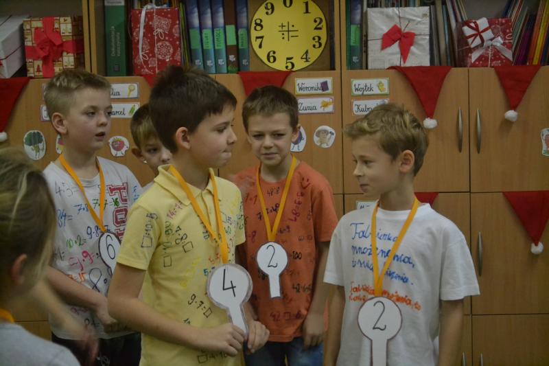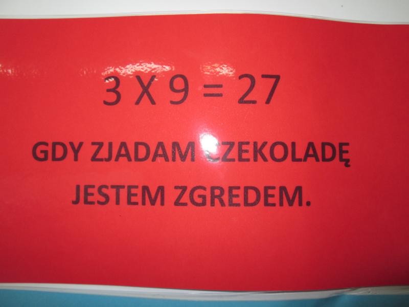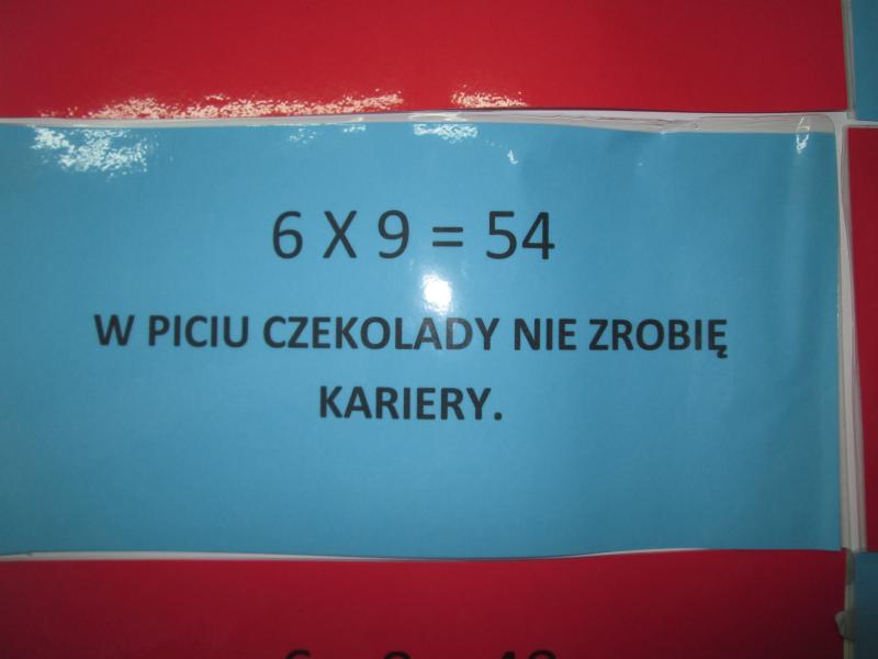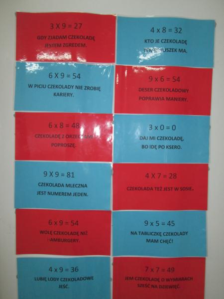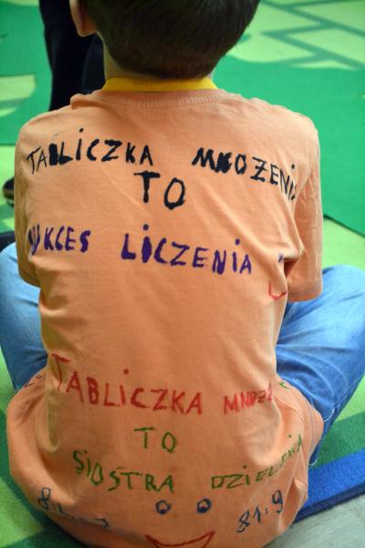 Uczniowie ułożyli prawie 40 wierszyków, które pomogły im w nauce tabliczki. Zaprojektowali też koszulki na których znajdowały się działania na mnożenie i dzielenie. W trakcie gier i zabaw utrwalali tabliczkę. Na zakończenie projektu odbyły się zajęcia otwarte – konkurs „Czekoladowy Mistrz Tabliczki Mnożenia”. Rodzice mogli zobaczyć, jak dzieci z radością bawią się i uczą. Mistrzami Tabliczki Mnożenia zostało 10 uczniów, a 2 otrzymało wyróżnienia. Wszystkim wręczono ordery i oczywiście tabliczki czekolady.