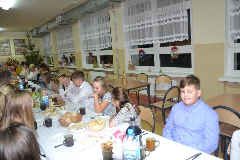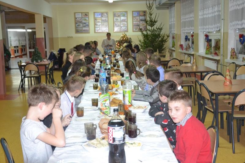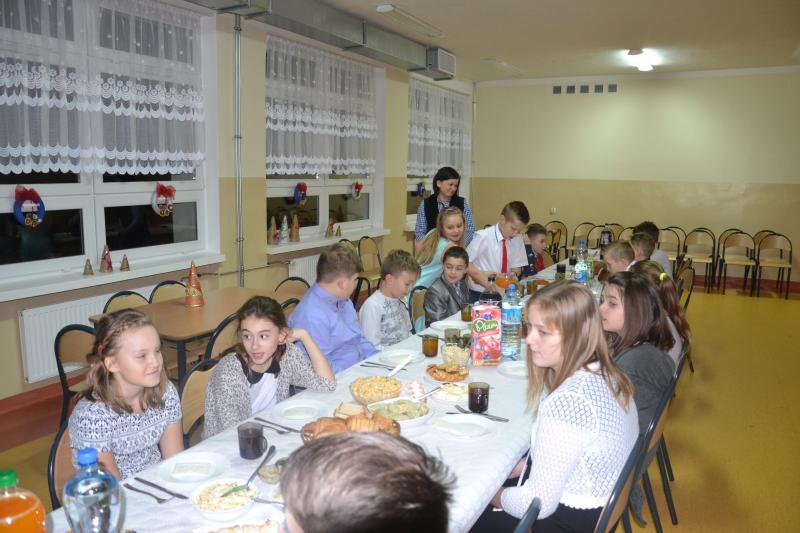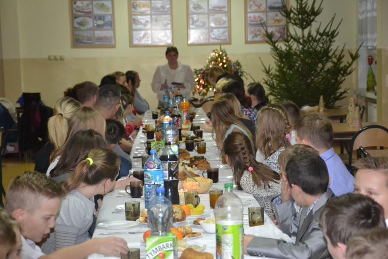 16.12.2016 w piątek na stołówce szkolnej rodzice ze swoimi dziećmi przygotowali kolację wigilijną. Nasza klasowa – rodzina zasiadła do stołu jak tradycja nakazuje z potrawami, które zawsze goszczą na naszych stolach w ten szczególny wieczór.