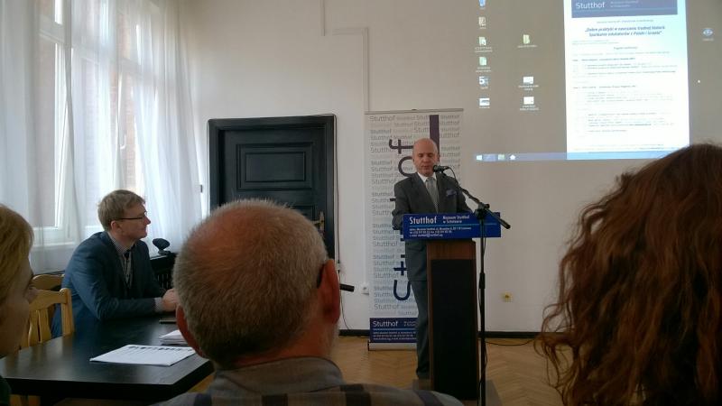 Mieliśmy również swój udział w tej wymianie myśli i rozwiązań edukacyjnych. Dyrektor szkoły miał zaszczyt przedstawić prezentację zatytułowaną „Misja, Patron i Historia”.