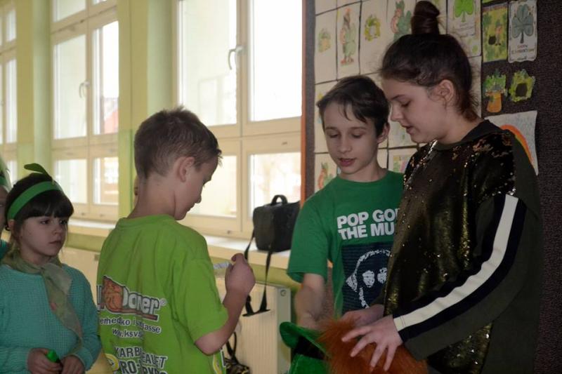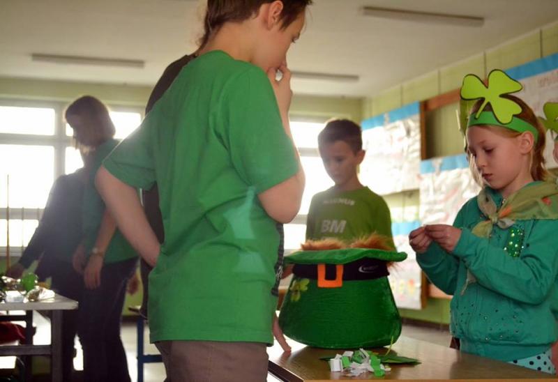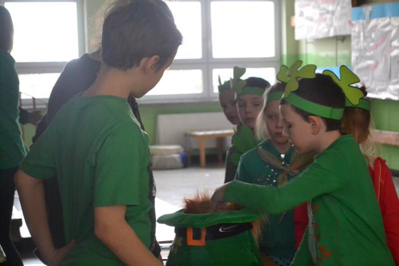 Należało przebrać się na zielono, przynieść wykonaną własnoręcznie koniczynkę i uczestniczyć w zielonej loterii fantowej.
