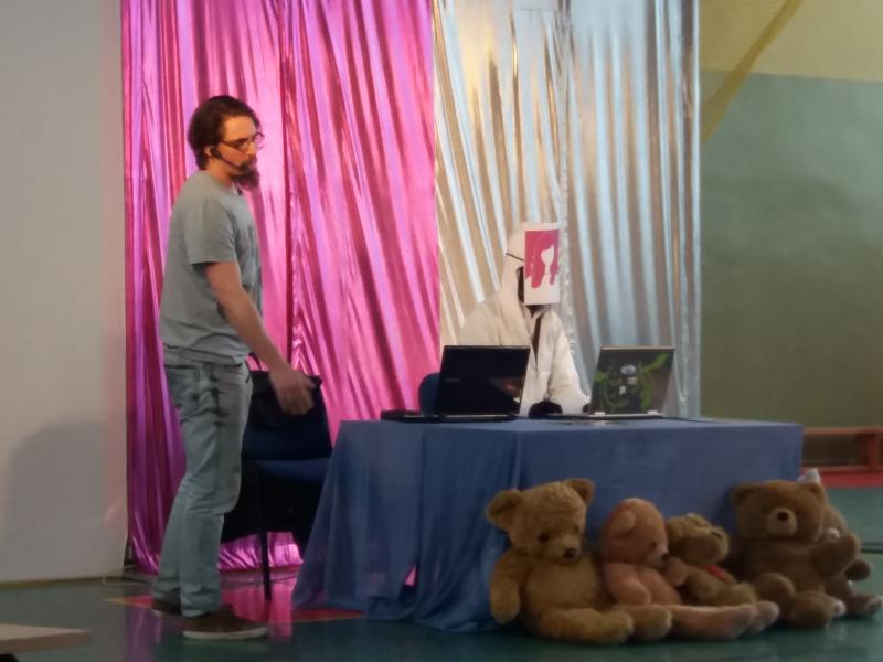 Na zakończenie spektaklu aktorzy podjęli krótką dyskusję z młodzieżą, uczniowie mogli zadawać pytania związane ze spektaklem ale również dotyczące ich własnych doświadczeń z wirtualnym światem.