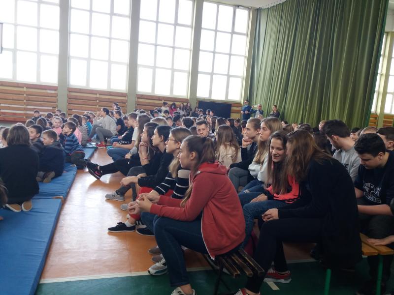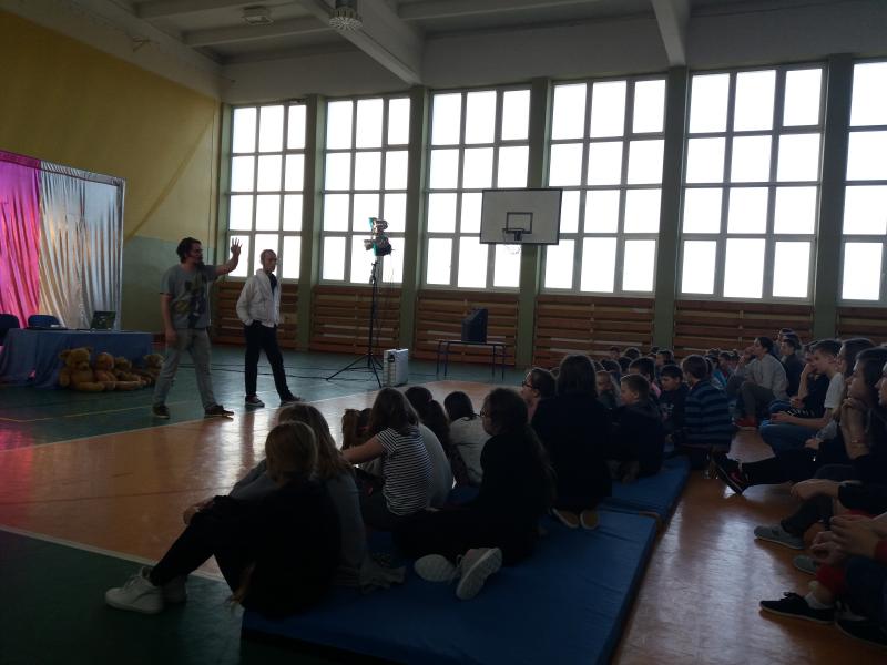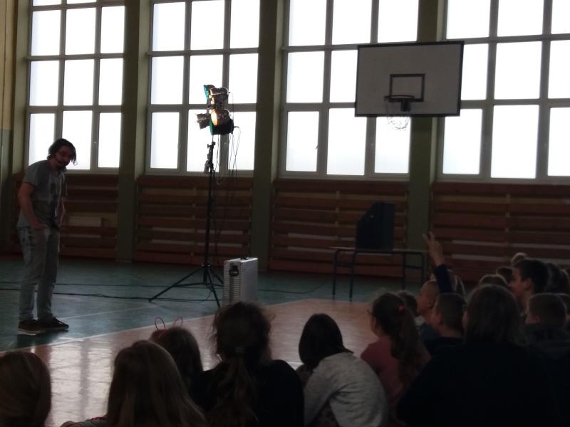Problemy podjęte w spektaklu są bliskie dzisiejszej młodzieży, dlatego występ aktorów w naszej szkole spotkał się zainteresowaniem uczniów, którzy z uwaga oglądali przedstawienie.