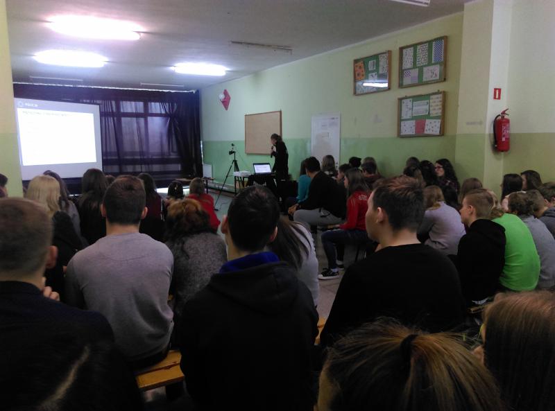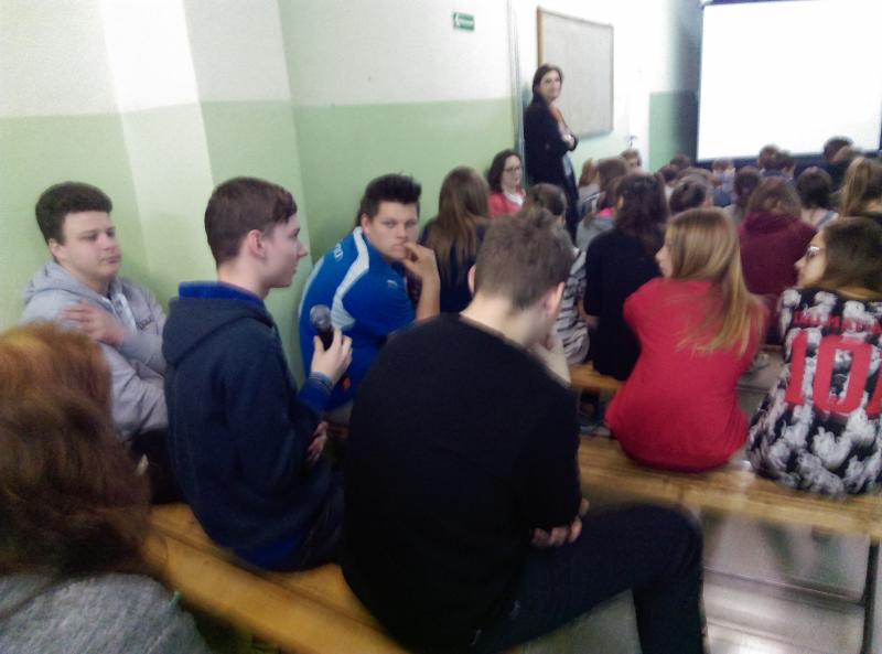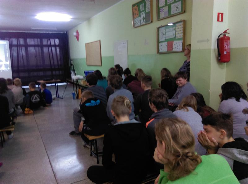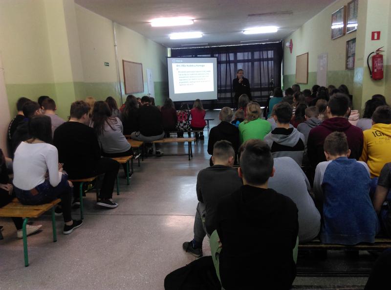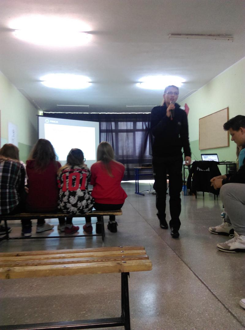 Jednym z wytycznych konkursu było zorganizowanie spotkania z przedstawicielem policji. W realizacji tego zadania pomogła nam pani dr Magdalena Pinkowicka z Komendy Powiatowej Policji w Nowym Dworze Gdańskim z zespołu ds. prewencji kryminalnej, nieletnich i patologii.
