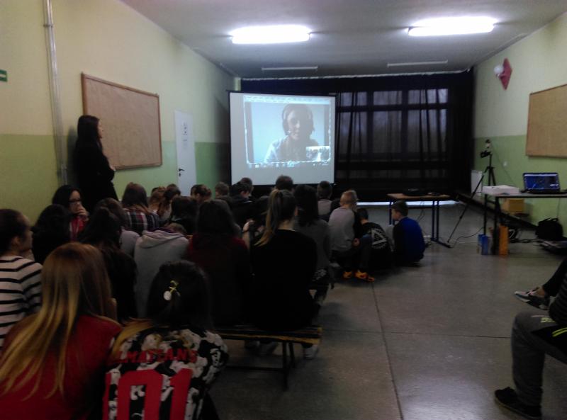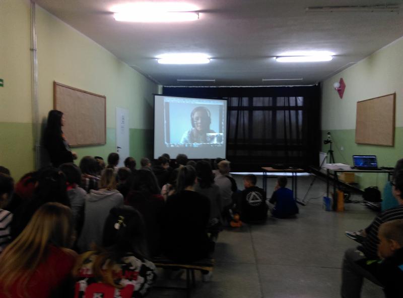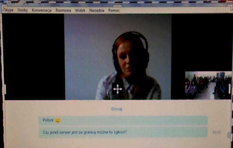 Na następnej lekcji razem braliśmy udział w wideokonferencji. Połączyliśmy się on-line przez Skype z panią Anną Kwaśnik z DyżurNet.pl – zespołu ekspertów Naukowej i Akademickiej Sieci Komputerowej, działającego jako punkt kontaktowy do zgłaszania nielegalnych treści w Internecie.