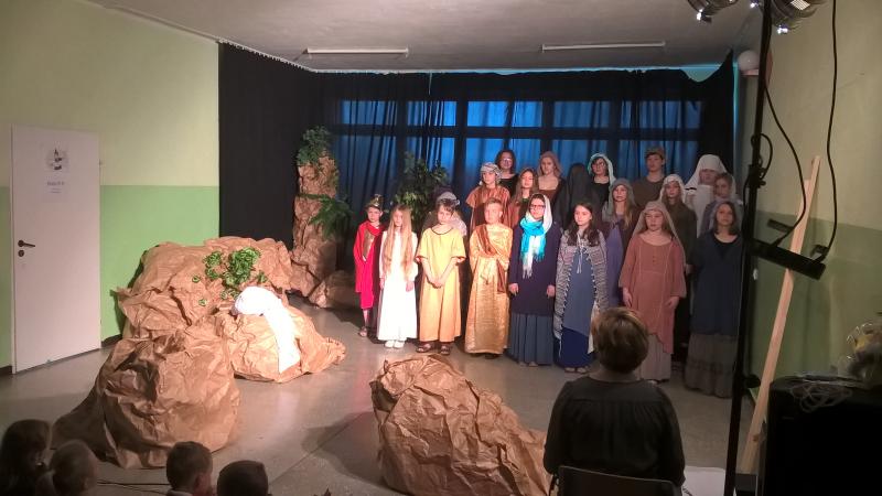 Młodzi aktorzy pokazali ostatnie godziny Jezusa w Ogrodzie Oliwnym przed aresztowaniem oraz czternaście stacji drogi krzyżowej, przeplatane wzruszającymi pieśniami, doskonale wprowadzając widzów w tematykę zbliżającego się Misterium Paschalnego.