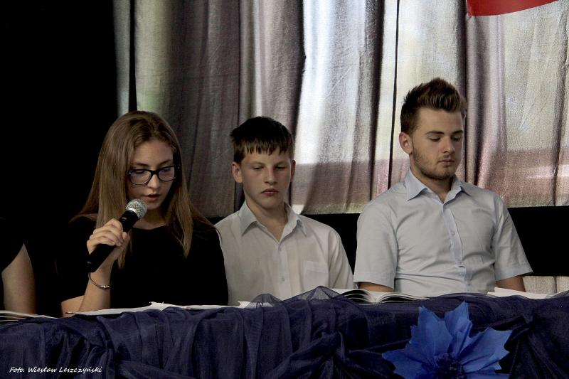 W pierwszej uczniowie- Klaudia Wichert, Maria Owsińska, Oliwia Banach, Aleksandra Bielińska, Agata Chwała, Karolina Chodacka, Paweł Jachimczyk i Remigiusz Pacewicz- zaprezentowali utwory naszych absolwentów dotyczące pamięci wojny. Autorami tych utworów byli absolwenci naszej szkoły: Dominika Krzyszczyk, Edyta Nowak i Paweł Suszek (utwory są opublikowane w książce „Przez szkiełko bursztynu”).
