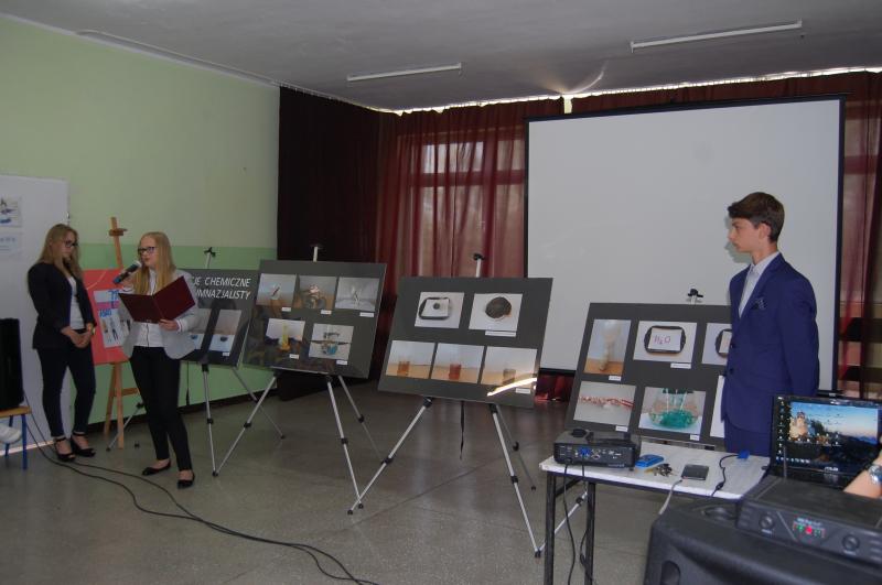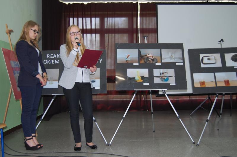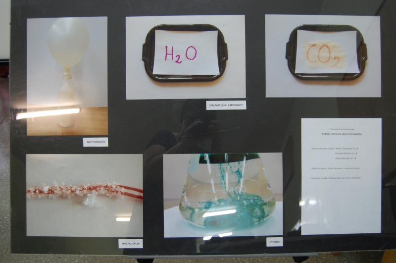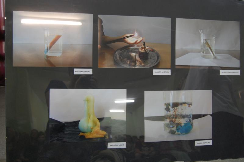 Grupa chemiczna przygotowała wystawę zdjęć prezentującą reakcje chemiczne okiem gimnazjalisty.