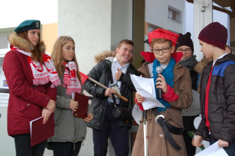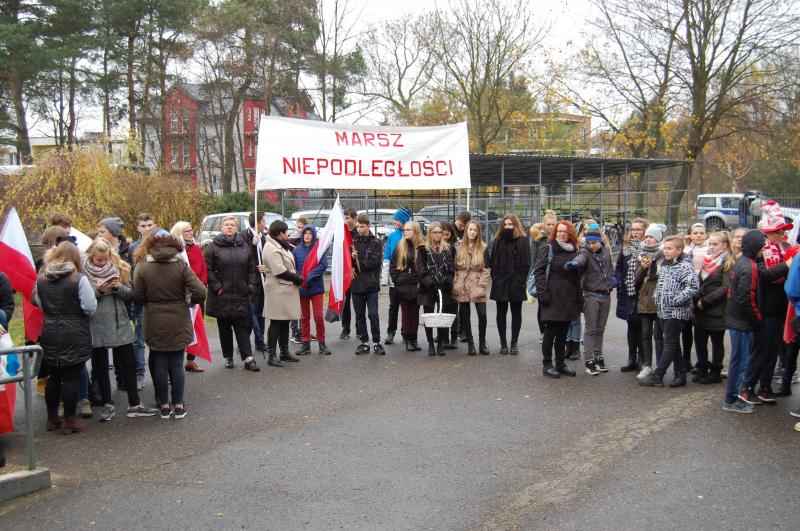 Dnia 10 listopada 2017 roku po raz trzeci nasza szkoła zorganizowała Marsz Niepodległości. O godzinie 12:00 odbył się przed szkołą apel z okazji Narodowego Święta Niepodległości. Każda klasa zaprezentowała postać historyczną, ważną dla naszego narodu.