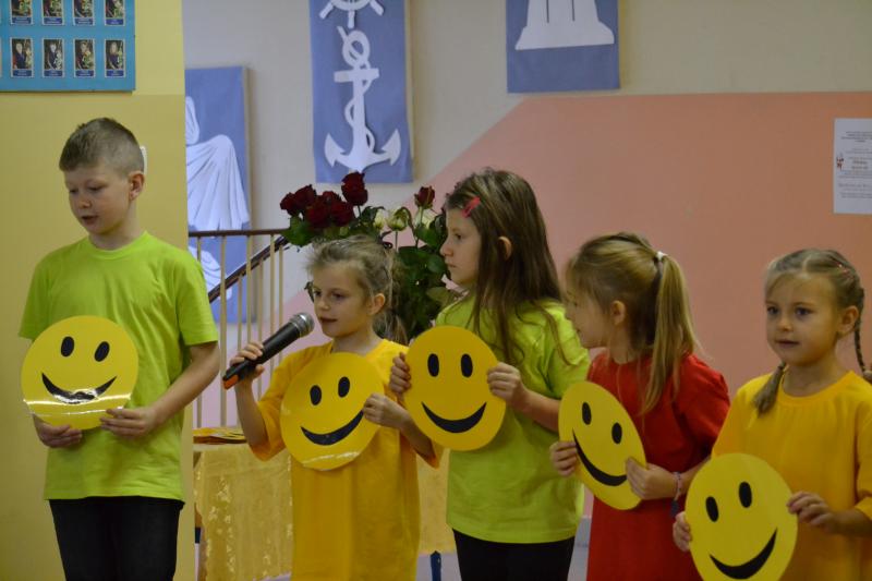 Tym razem przygotowały go dzieci z klasy I a, II a , III a edukacji wczesnoszkolnej, a pani Małgosia, Mariola i Ania czuwały nad prawidłowym przebiegiem uroczystości.