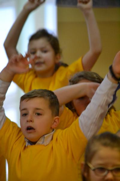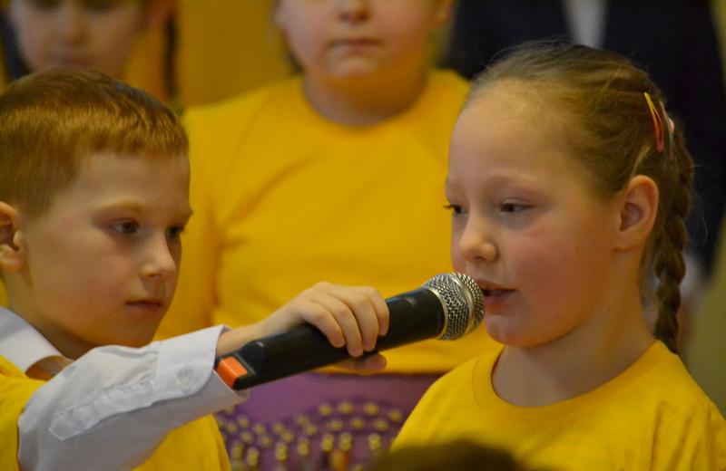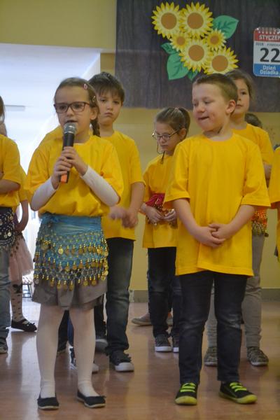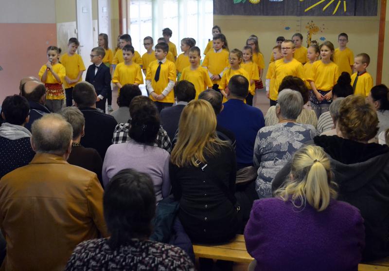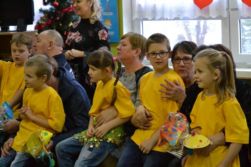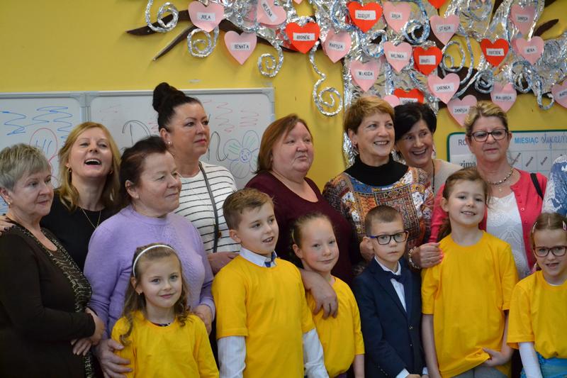 Dzień Babci i Dziadka przygotowany przez uczniów klasy Ia i Ib edukacji wczesnoszkolnej pod czujnym okiem pani Edytki i Małgosi.