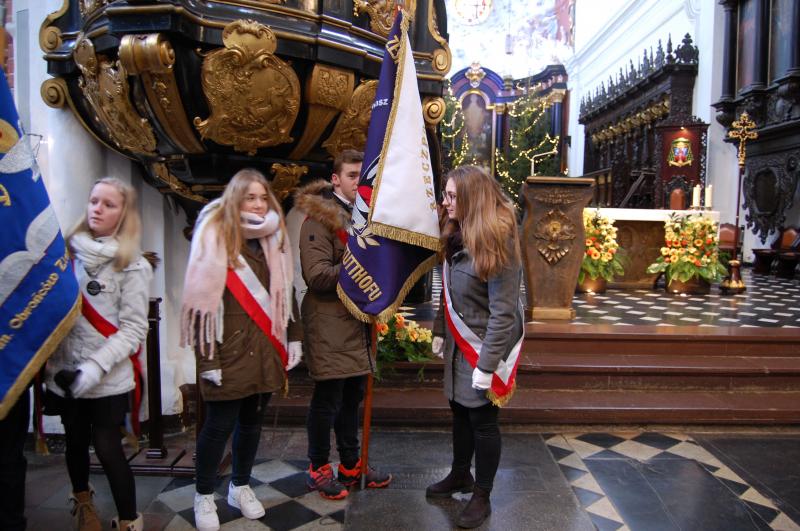 Jak zawsze szkołę reprezentował poczet sztandarowy. Delegacja uczniów składała się z uczniów klas II wygaszanego Gimnazjum. Opiekę nad uczniami sprawowali: Renata Afeltowicz, Joanna Hulanicka, Urszula Wincek i Sylwia Owsińska.