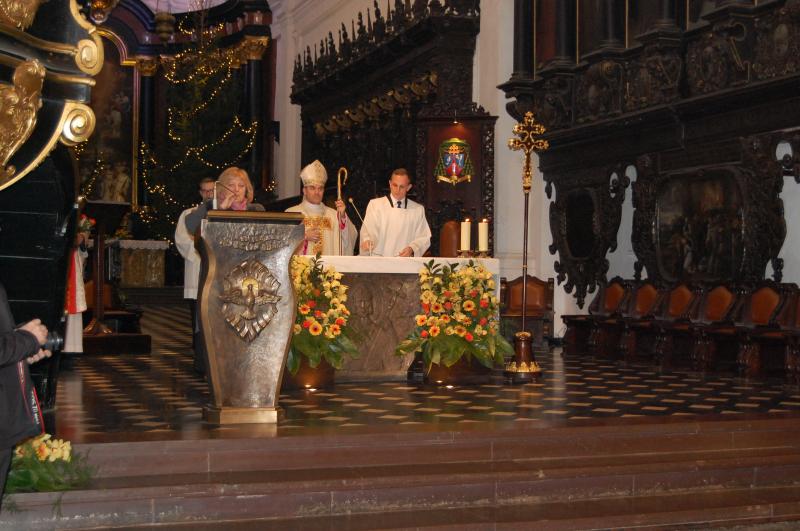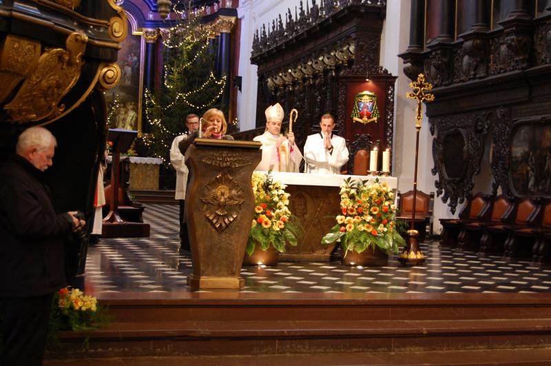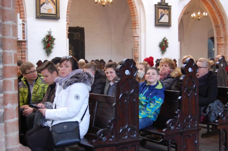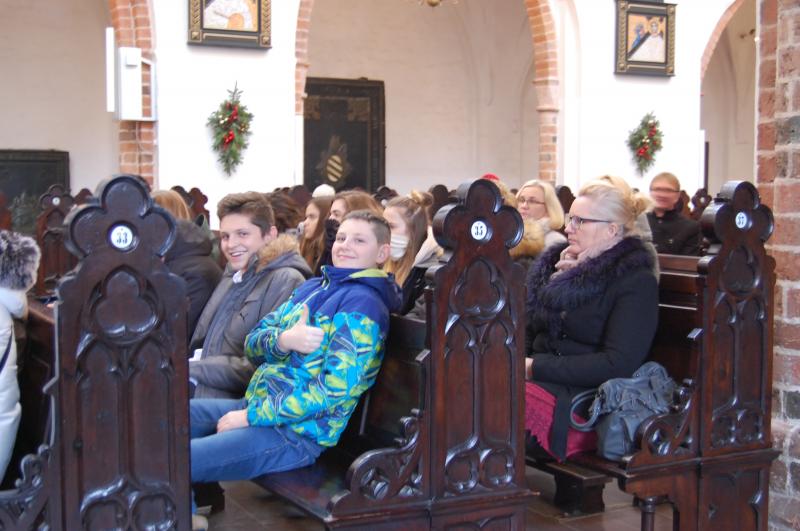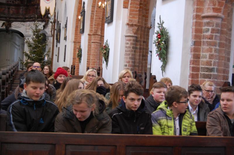 Przedstawiciele szkolnej społeczności uczestniczyli w Mszy Świętej oraz spotkaniu opłatkowym z nielicznymi już przedstawicielami byłych więźniów oraz organizacji, szkół i instytucji współpracujących z Muzeum Stutthof w pielęgnowaniu pamięci o losach więźniów obozu koncentracyjnego.