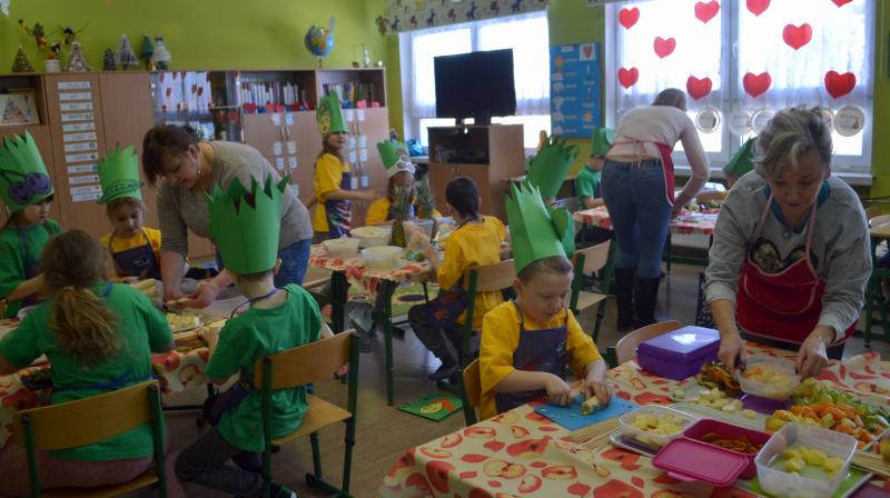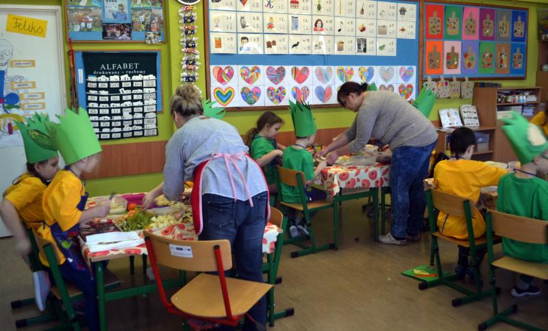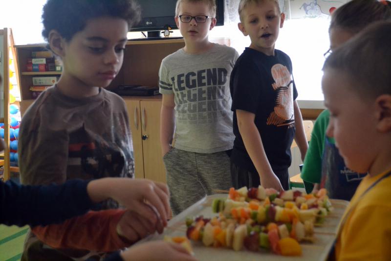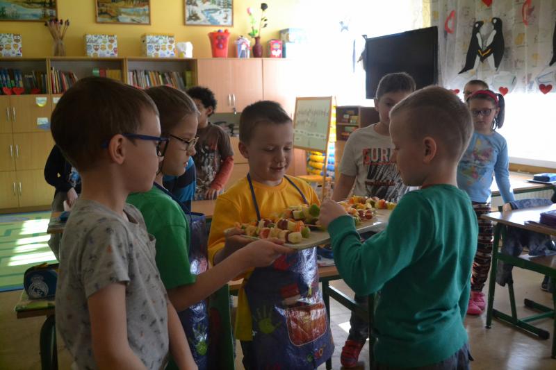 Witaminy w środku zimy – pod takim hasłem przebiegły dziś zajęcia w klasie I b. Dzieciaczki wykonały owocowe szaszłyki, którymi obdzieliły pół szkoły. Same też posiliły się co nie co. Po tych owocowych wariacjach szkolny obiad już nie był tak smakowity jak zawsze.