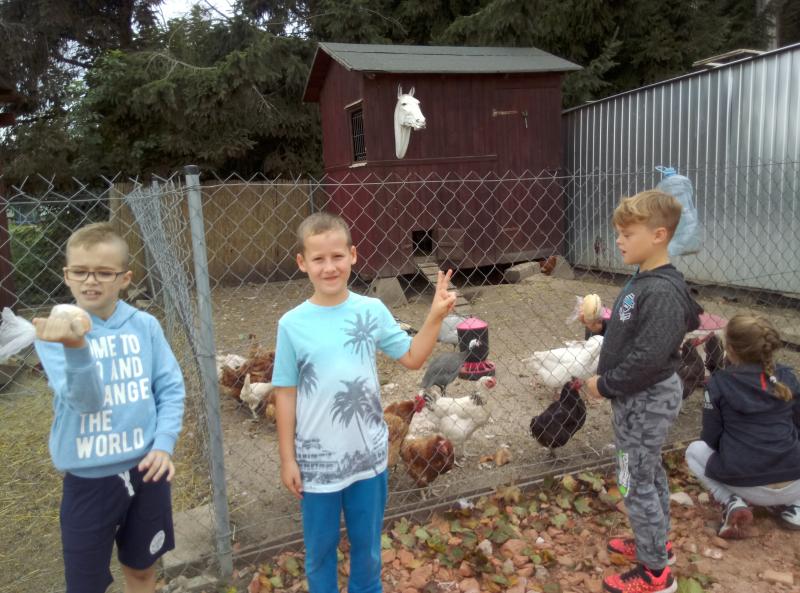 W międzyczasie oglądaliśmy zwierzęta w mini zoo i bawiliśmy się na zjeżdżalni.