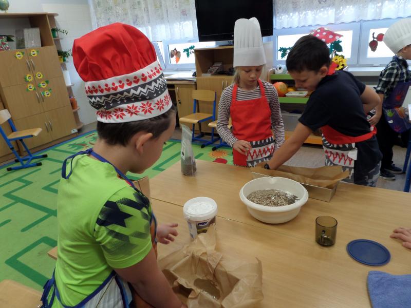 Uczniowie klasy 3a realizując projekt „O chlebie” postanowili samodzielnie upiec chleb.