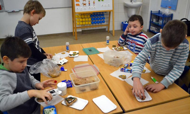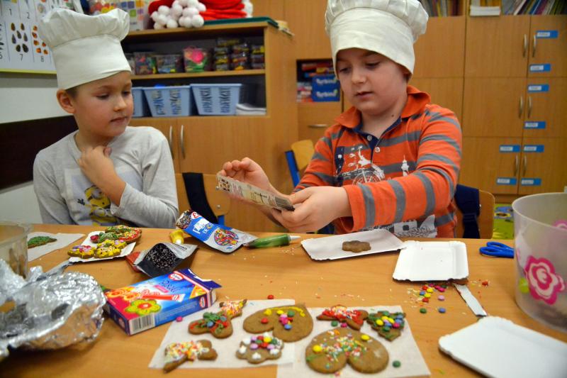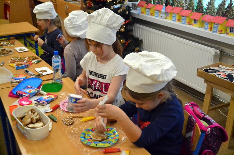 Piernikowe szaleństwo w klasach I edukacji wczesnoszkolnej, czyli: lukrowanie, obsypywanie, smarowanie, cukrowanie, podjadanie.