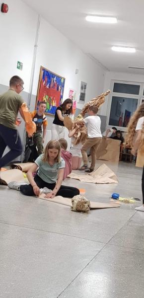 Dzieci poznawały warsztat pracy aktora, pisały krótkie scenki oraz przygotowały mini przedstawienia.