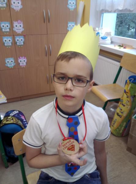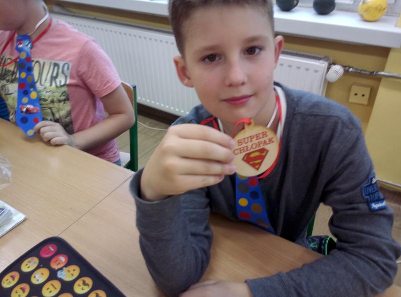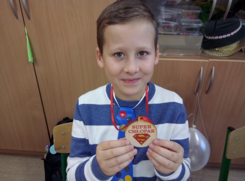 Kornelia, gospodyni klasy złożyła życzenia wszystkim chłopakom, następnie każdy z chłopców musiał odpowiedzieć na parę pytań. Po konsultacjach dziewczynki wybrały Adasia na „Super chłopaka”, nastąpiła koronacja i wręczenie wszystkim chłopcom prezentów.