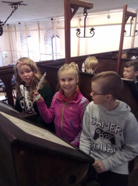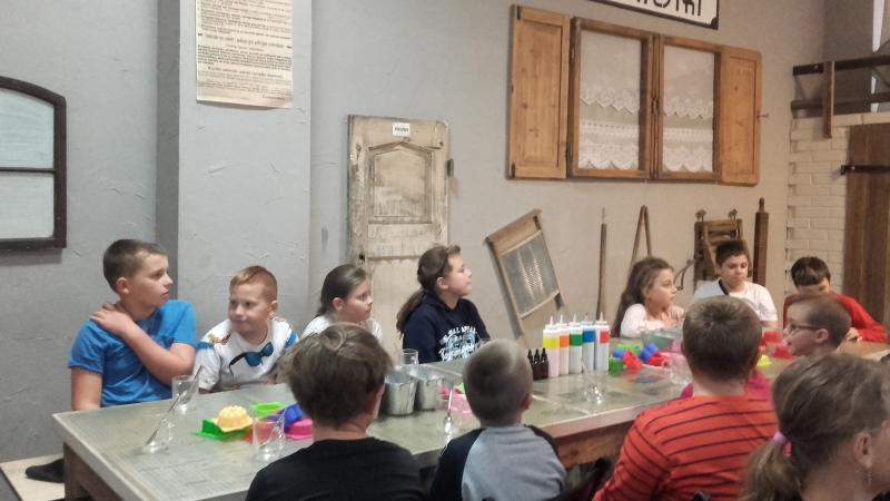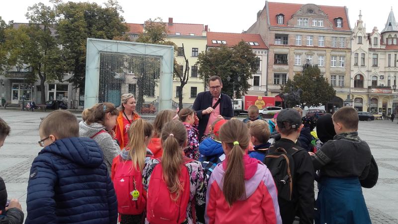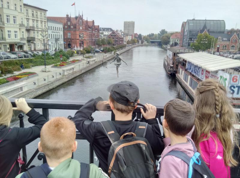 Bydgoszcz też zwiedzaliśmy z przewodnikiem, który pokazał nam ciekawe miejsca. Byliśmy na Starym Rynku i tam spotkaliśmy Twardowskiego. Była to dla nas niespodzianka. Ostatnim miejscem zwiedzania podczas wycieczki było Muzeum Mydła i Historia Brudu. W muzeum w ciekawy i niecodzienny sposób pokazana jest historia higieny, brudu i mydła. Podczas warsztatów mydlarskich dzieci same wytworzyły mydła, które zabrali na pamiątkę.