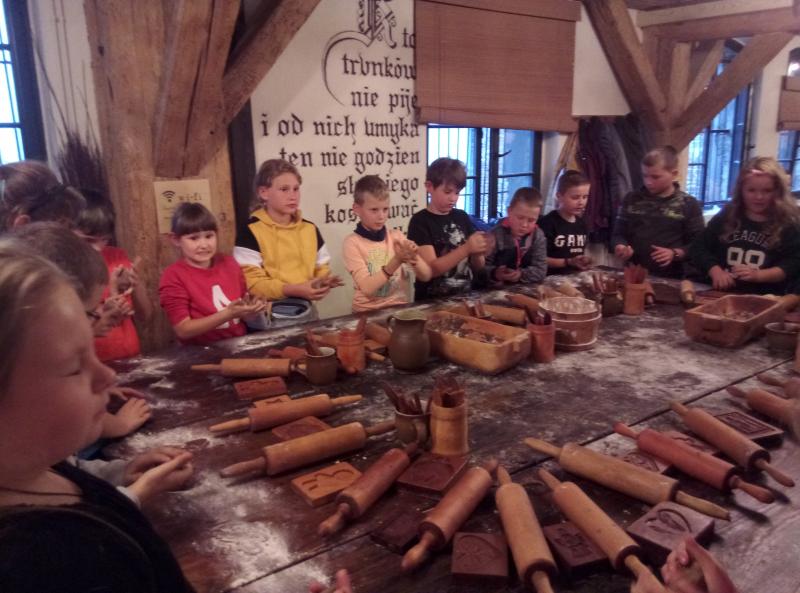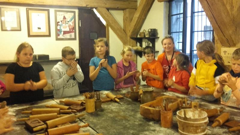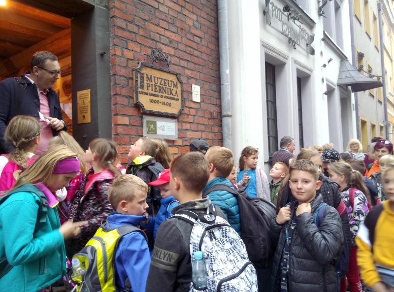 Toruń zwiedzaliśmy z przewodnikiem w stroju historycznym. Największą atrakcją była Krzywa Wieża i Stare Miasto. Odwiedziliśmy także Żywe Muzeum Piernika. Jest to doskonała zabawa. Dzieci pod bacznym okiem Mistrza Piekarniczego i Wiedźmy Korzennej przeniosły się do czasów średniowiecznego Torunia. Zostali prawdziwymi terminatorami, czyli uczniami piernikarskimi. Każdy otrzymał na pamiątkę własnoręcznie wypieczony przez siebie piernik.
