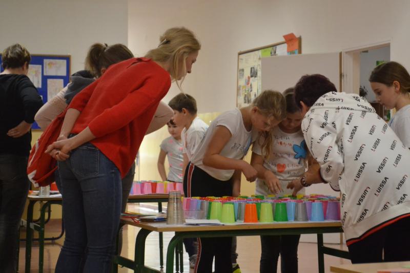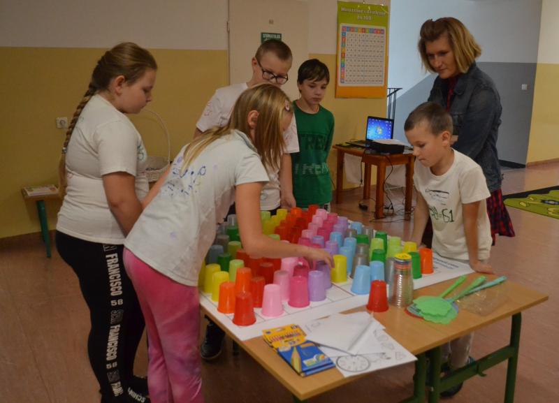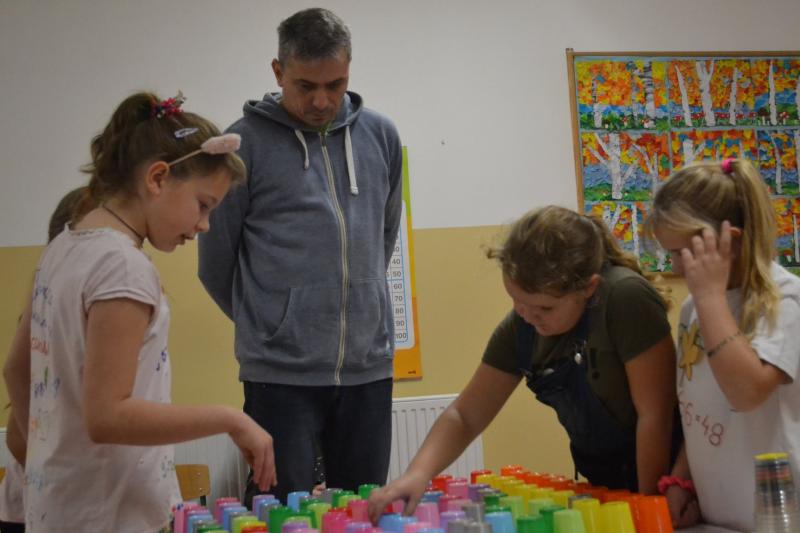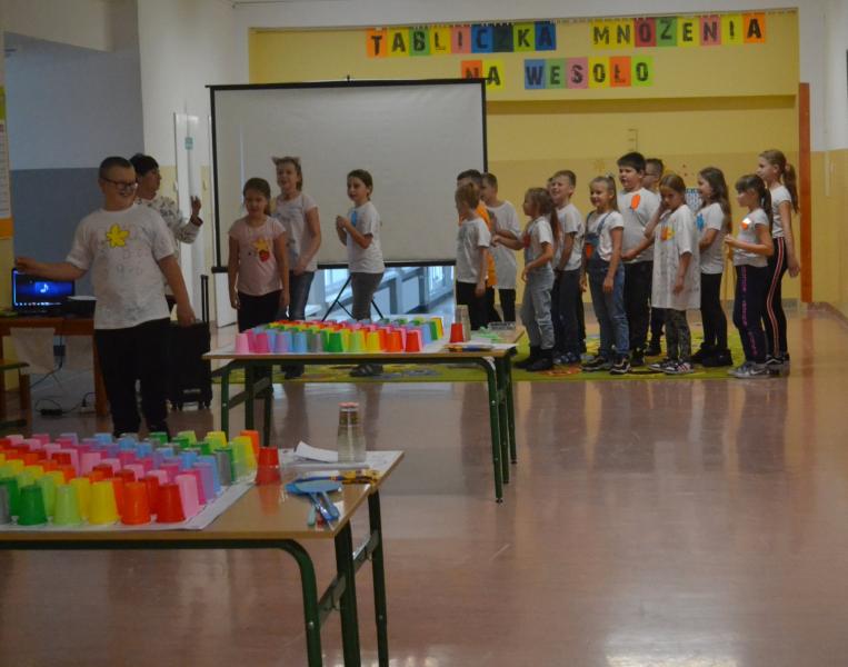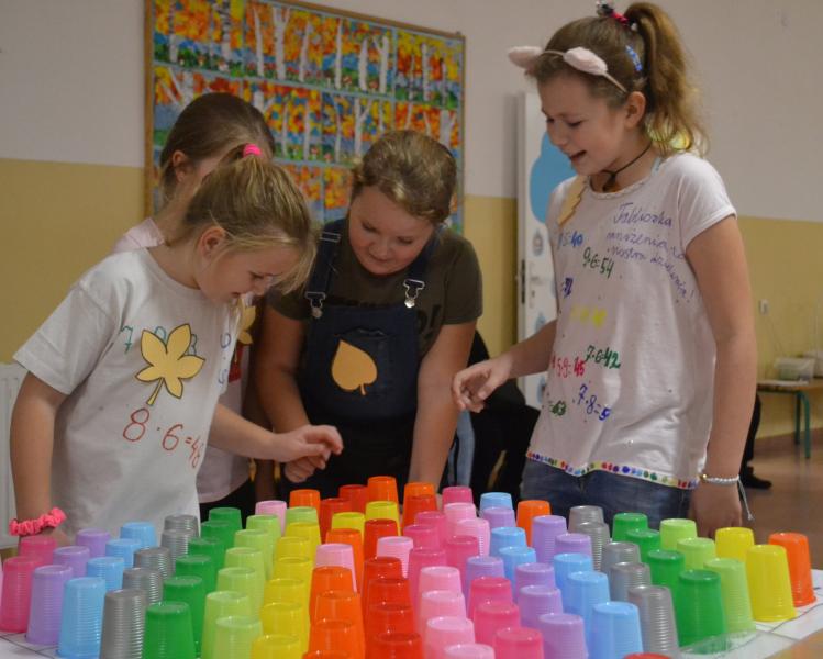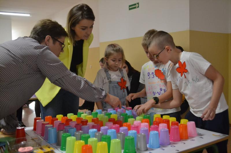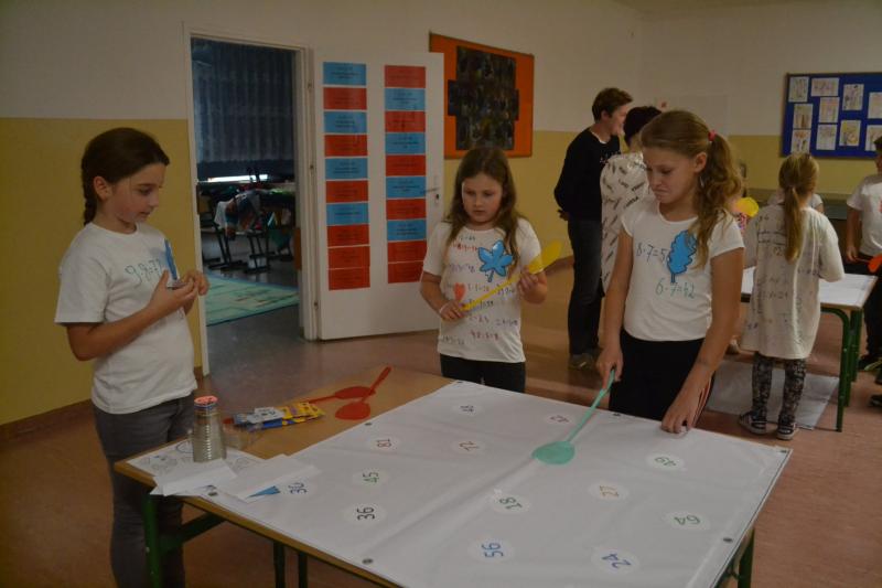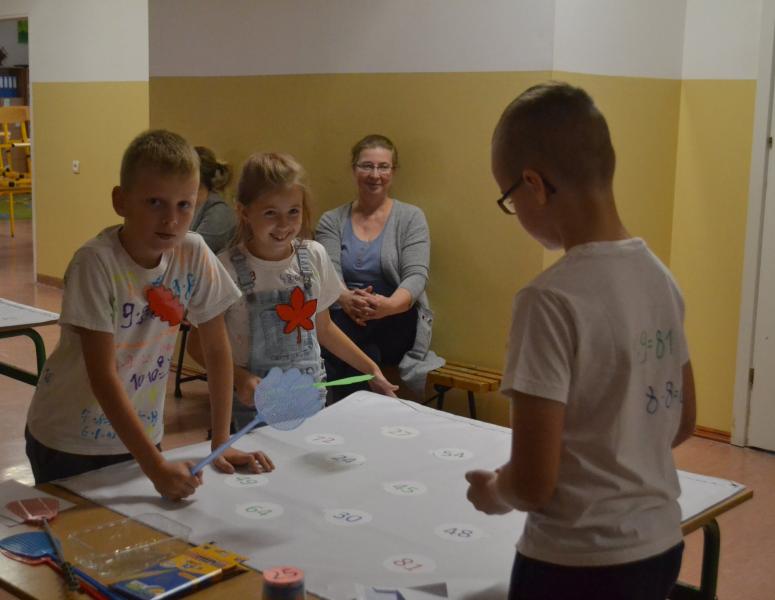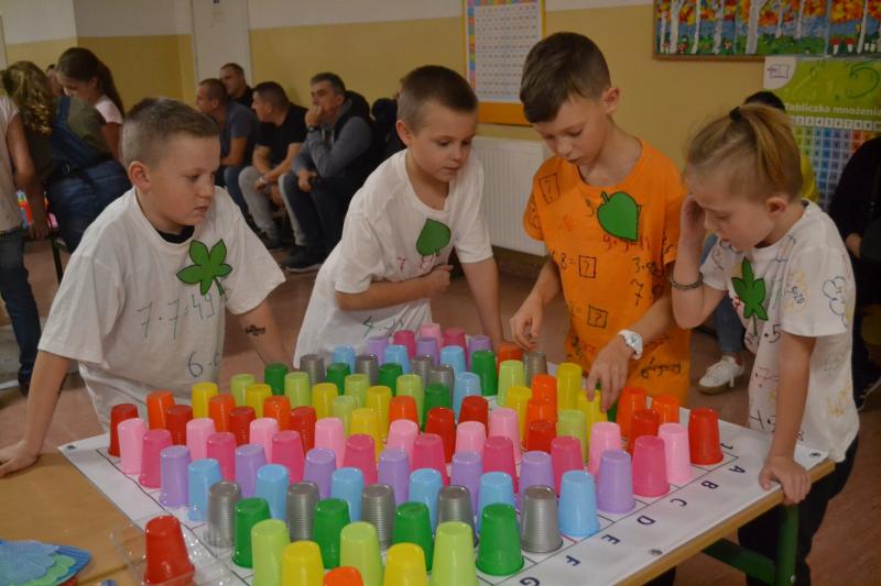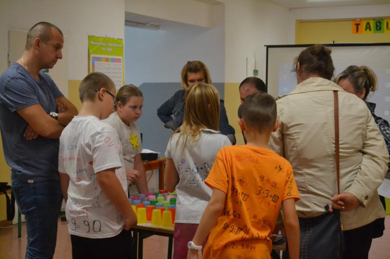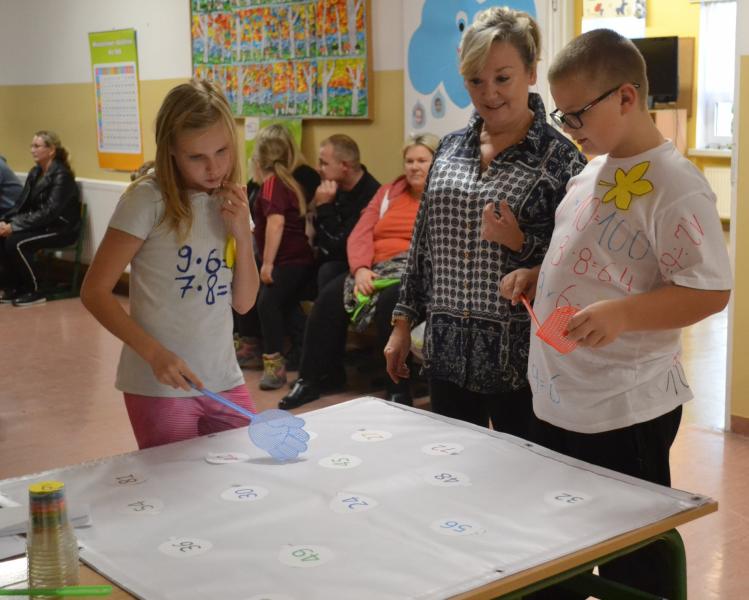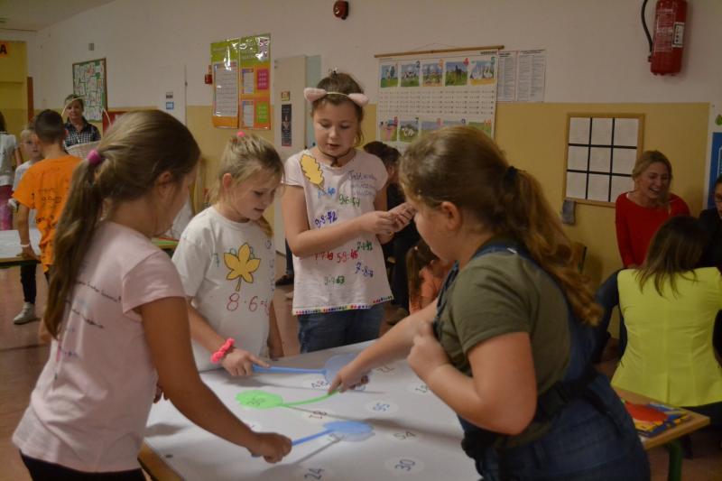 Panie nauczycielki pokazały, że poprzez zabawę można utrwalać tabliczkę mnożenia, doskonalić pracę w grupie, wspomagać wszechstronny rozwój, umacniać więzi z rodzicami, którzy aktywnie uczestniczyli w zajęciach.