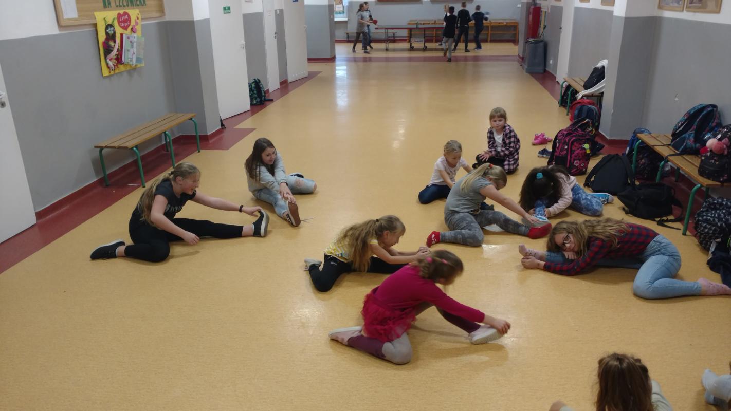 Pani Wiola prowadziła zajęcia z tańca współczesnego. Dziewczynki nauczyły się układu do piosenki Shape of you.
