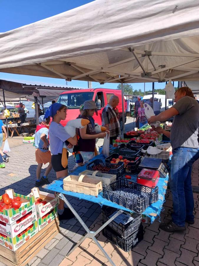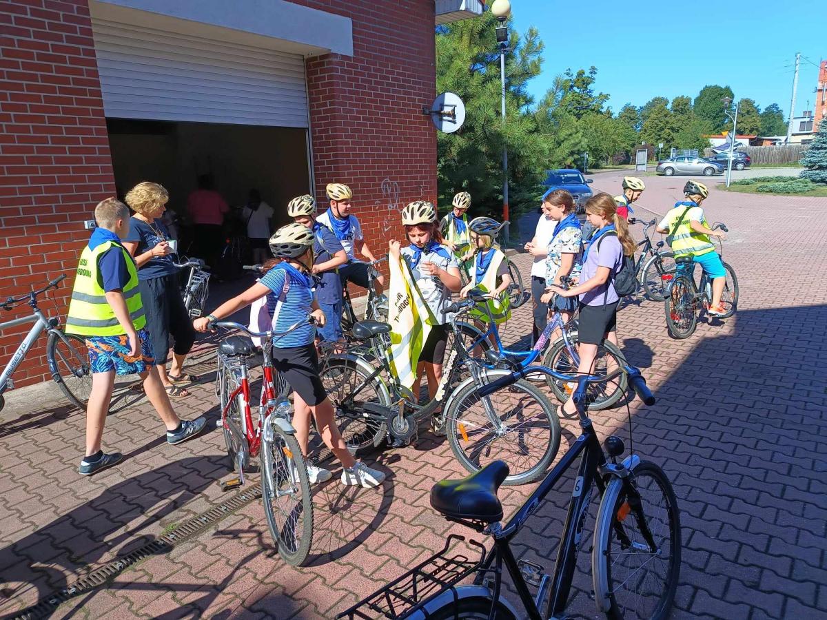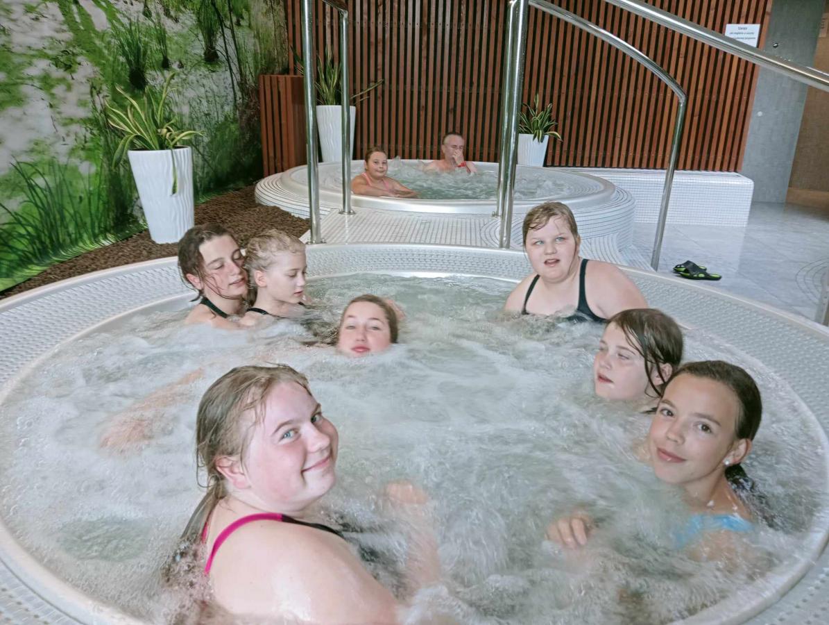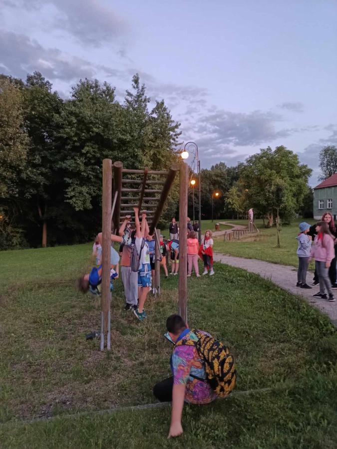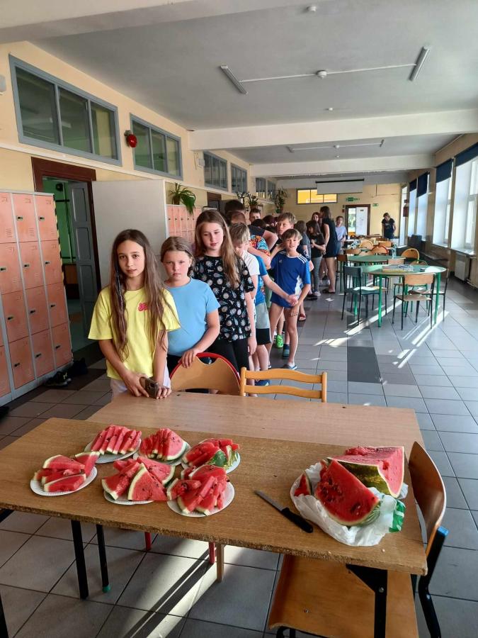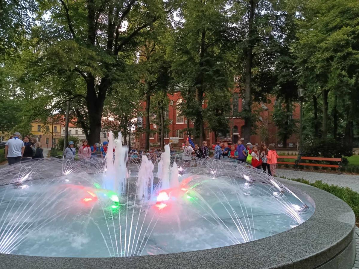 Dwie grupy dotarły do pałacu w Goszczu rowerami. Tam czekał na nich przewodnik. Grupa najmłodsza korzystała z wypoczynku w miejskim parku. Pogoda dopisała, więc była i rozgrzewka na świeżym powietrzu, i zakupy owoców na lokalnym straganie, i wieczorny spacer na dobranoc. Uwieńczeniem dnia były zabawy w basenie i prezent- ogromny arbuz. Bliskim Lenki dziękujemy za niespodziankę.