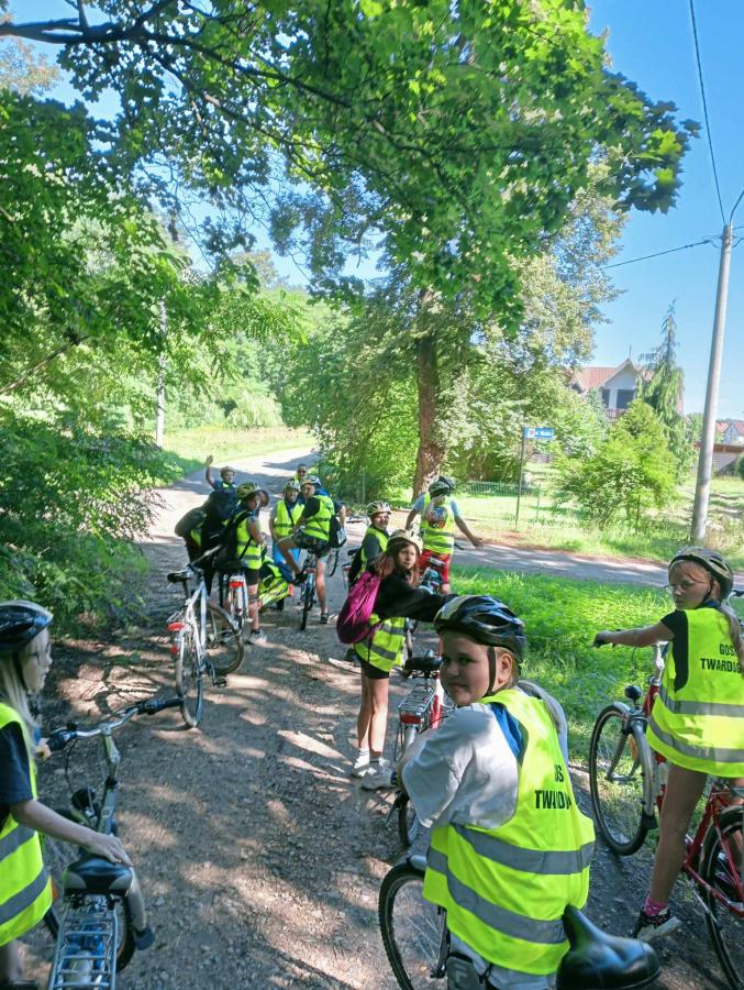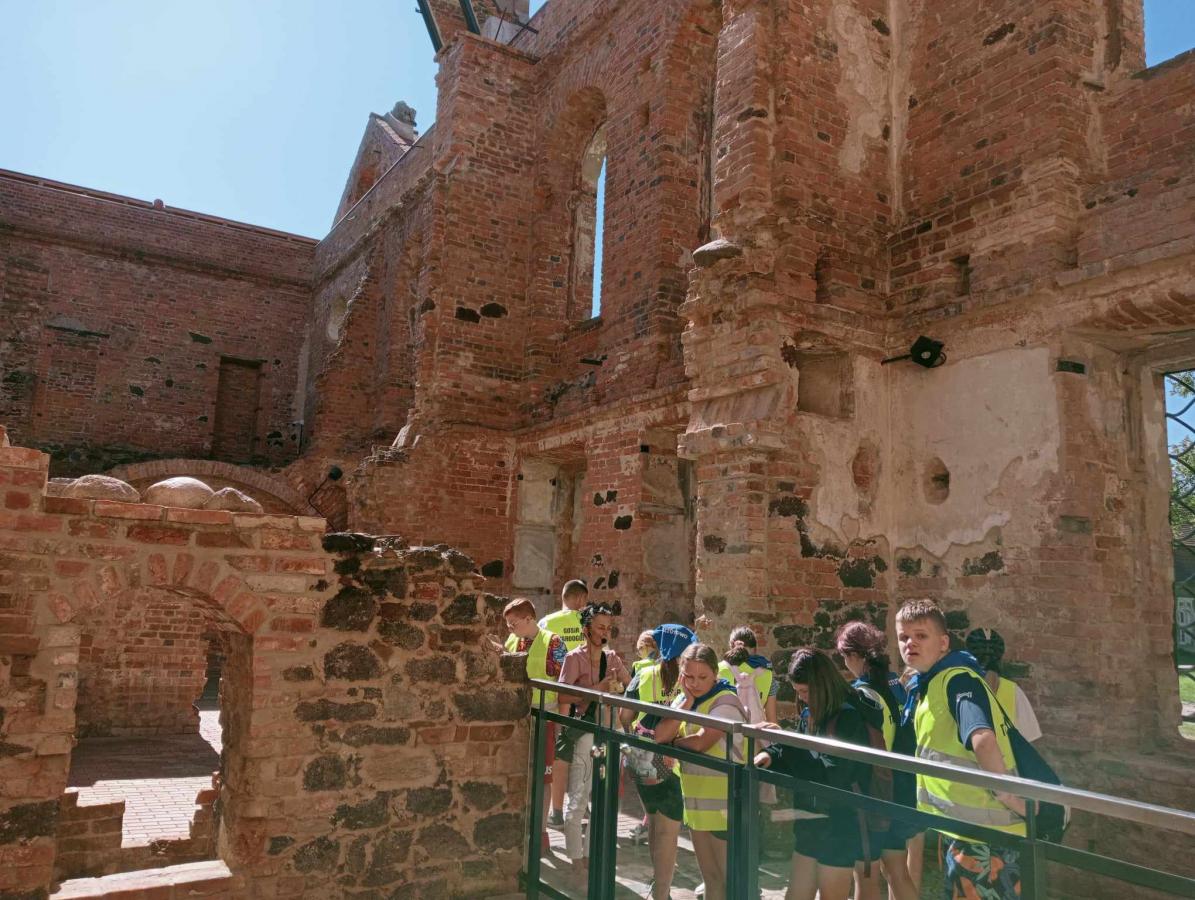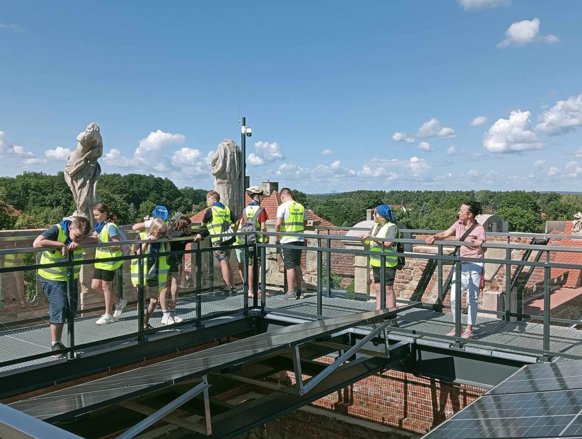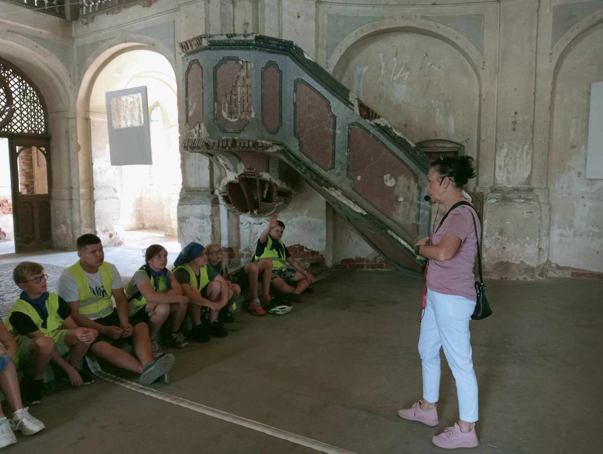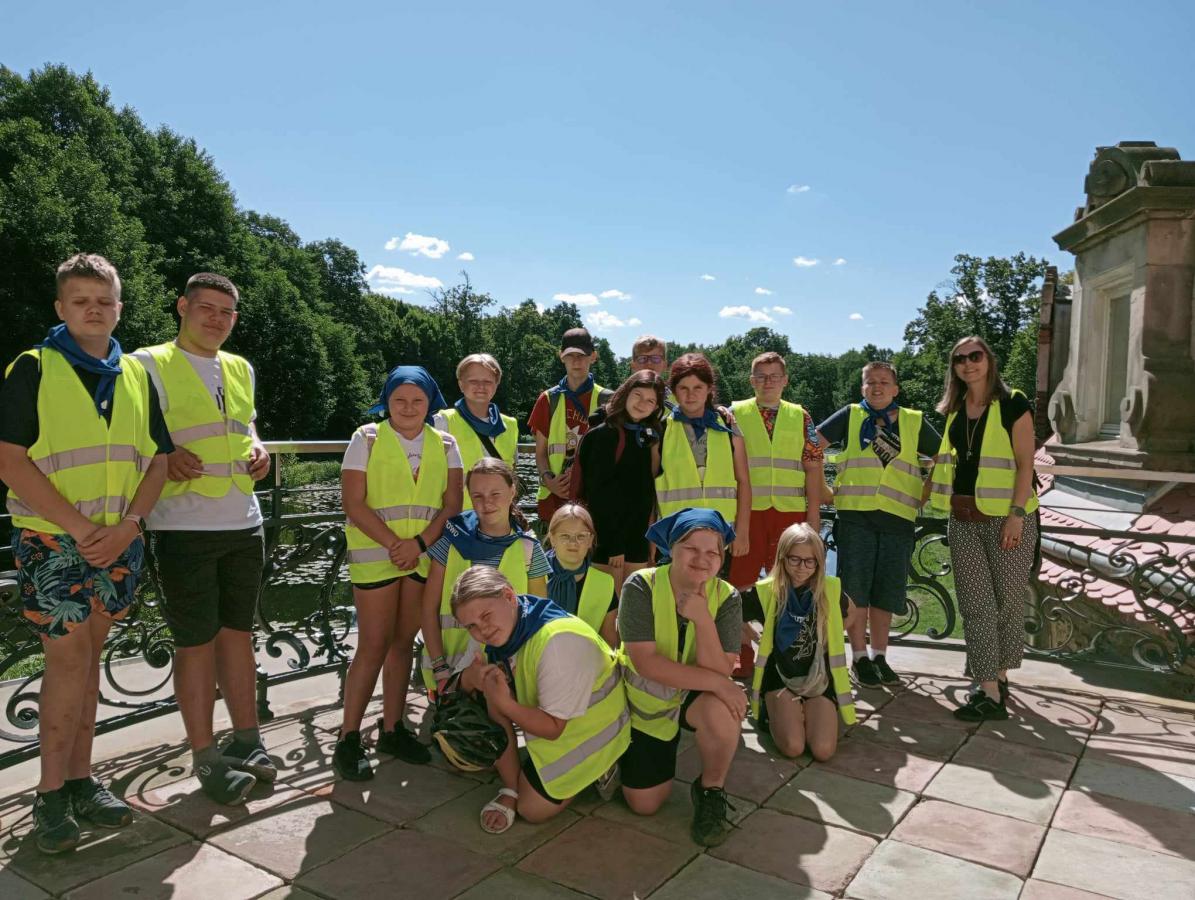 Dzieci nocujące w Twardogórze korzystały dziś z wycieczek rowerowych do Miejscowości Goszcz, w której znajduje się pałac rodu von Reichenbach- Goschütz. To niezwykły zabytek wzorowany na najsłynniejszych francuskich rezydencjach, m.in. w Wersalu, wzniesiony w 1749r. i zrewitalizowany w 2021r. w formie trwałej ruiny po pożarze z 1947 roku.