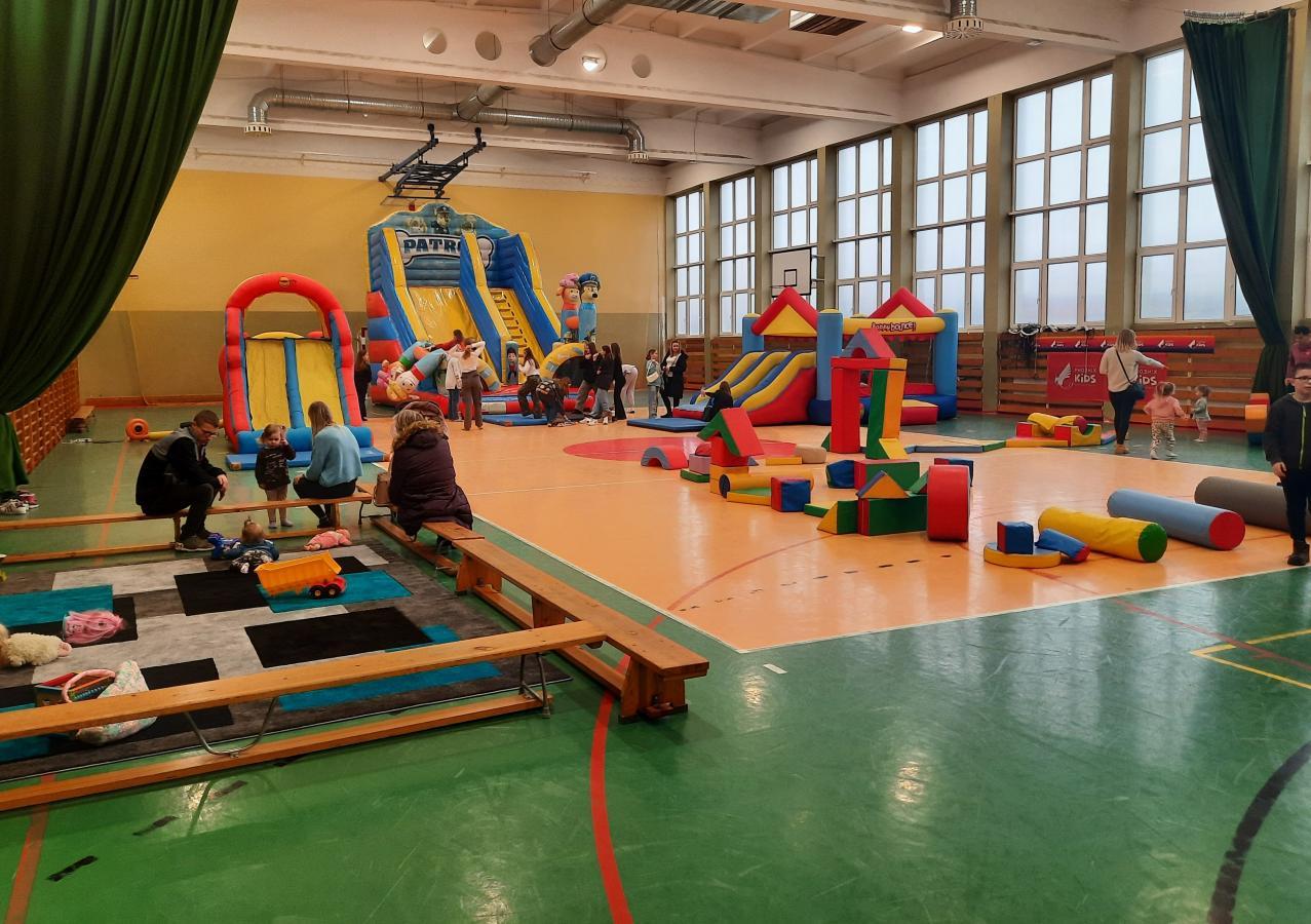 - sala zabaw w sali gimnastycznej m.in. z kolorowymi hiperblokami, zjeżdżalniami, stołami do ping- ponga,