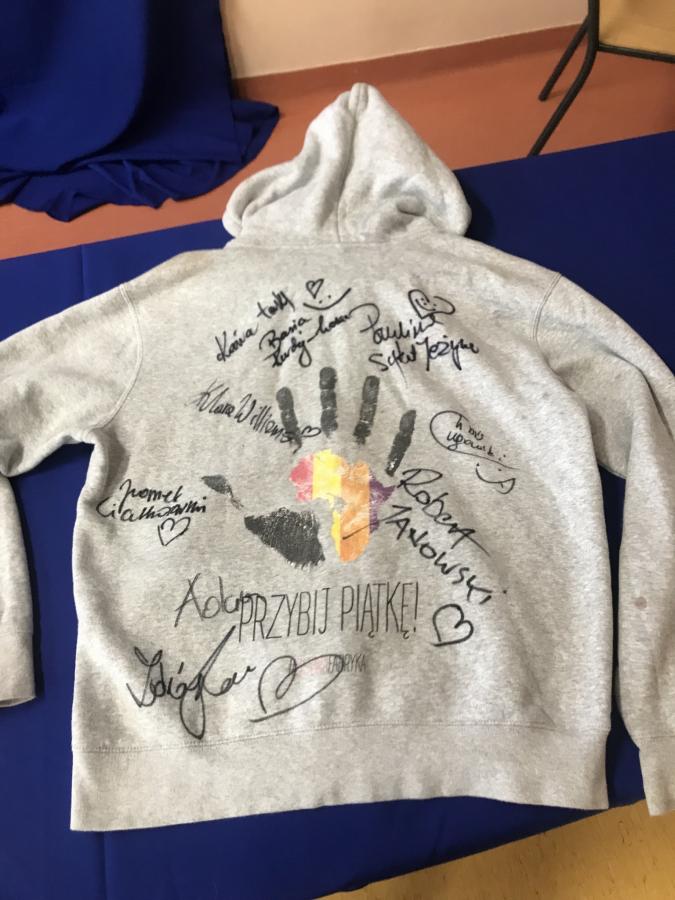 - Paulina Szewczuk przekazała wylicytowaną w ubiegłym roku bluzę Tomasza Ciachorowskiego z podpisami uczestników 15 edycji programu „Twoja Twarz Brzmi Znajomo”, czyli darczyńcy oraz: Roberta Janowskiego, Barbary Kurdej- Szatan, Krzysztofa Cugowskiego Juniora, Adama Zdrójkowskiego, Katarzyny Łaski, Pauliny Sykut- Jeżyny i Klary Williams