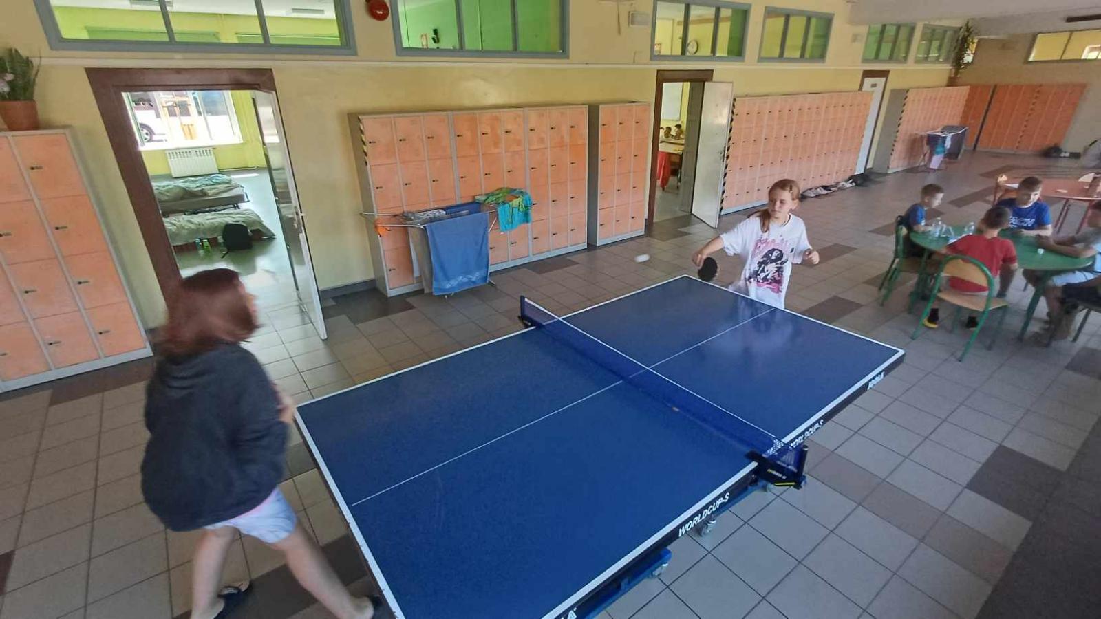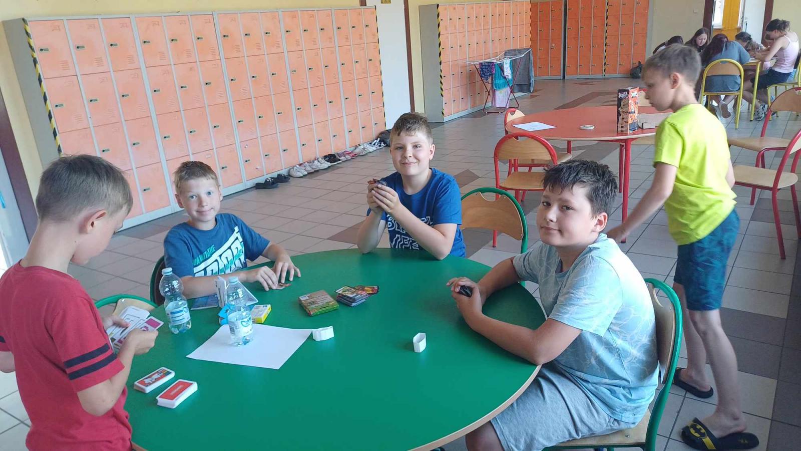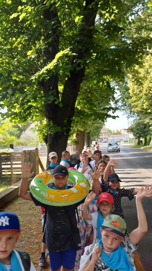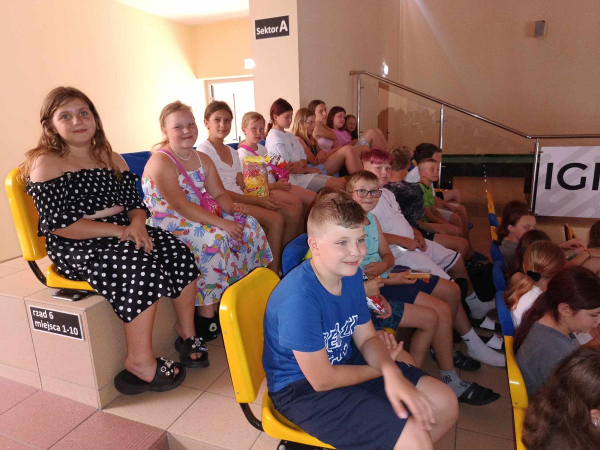 Czwartego dnia pobytu w Twardogórze grupa naszych kolonistów pozostała na miejscu. Były gry i zabawy, projekcja filmu, a po południu basen. Dzień odpoczynku w szkole