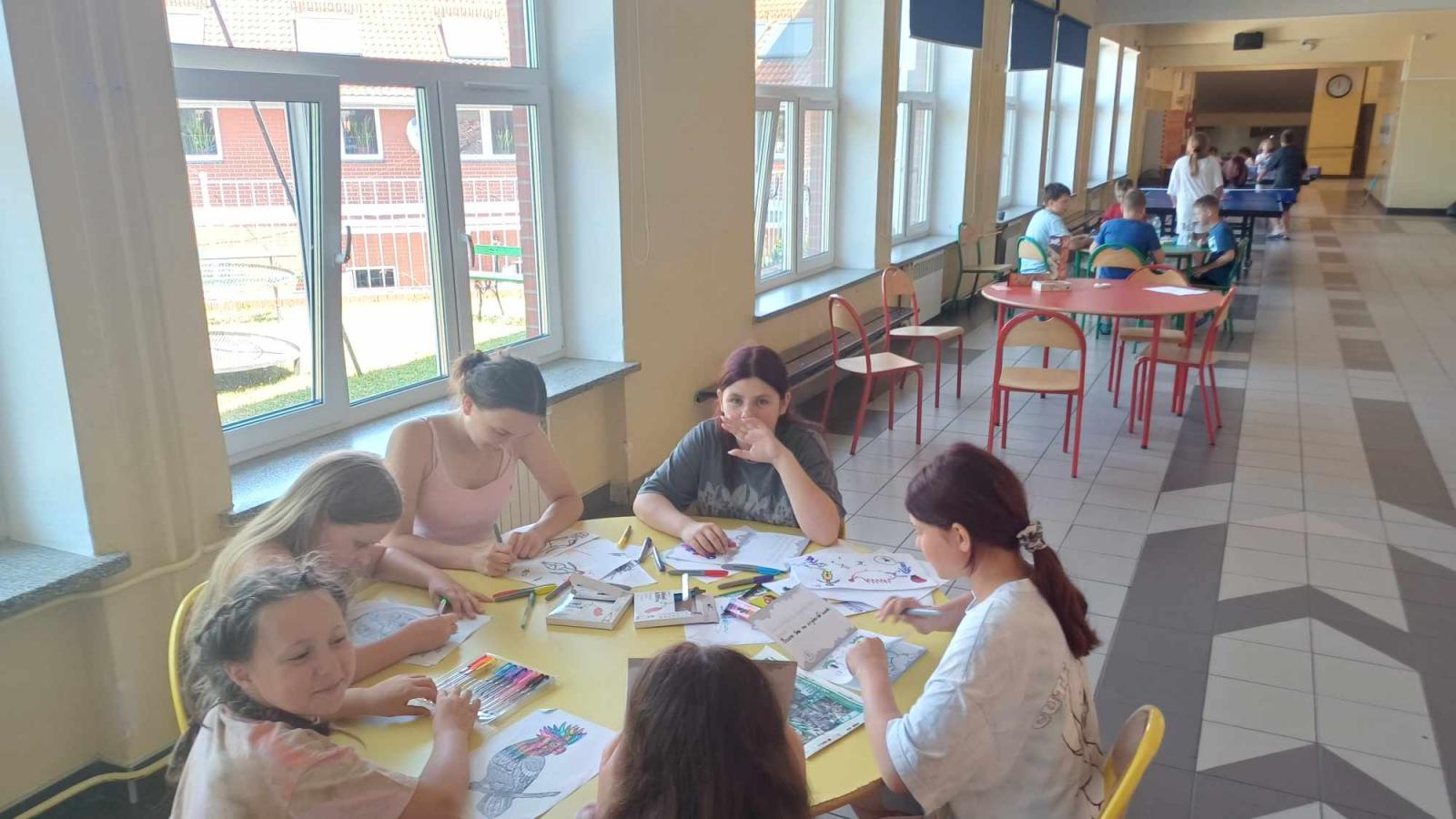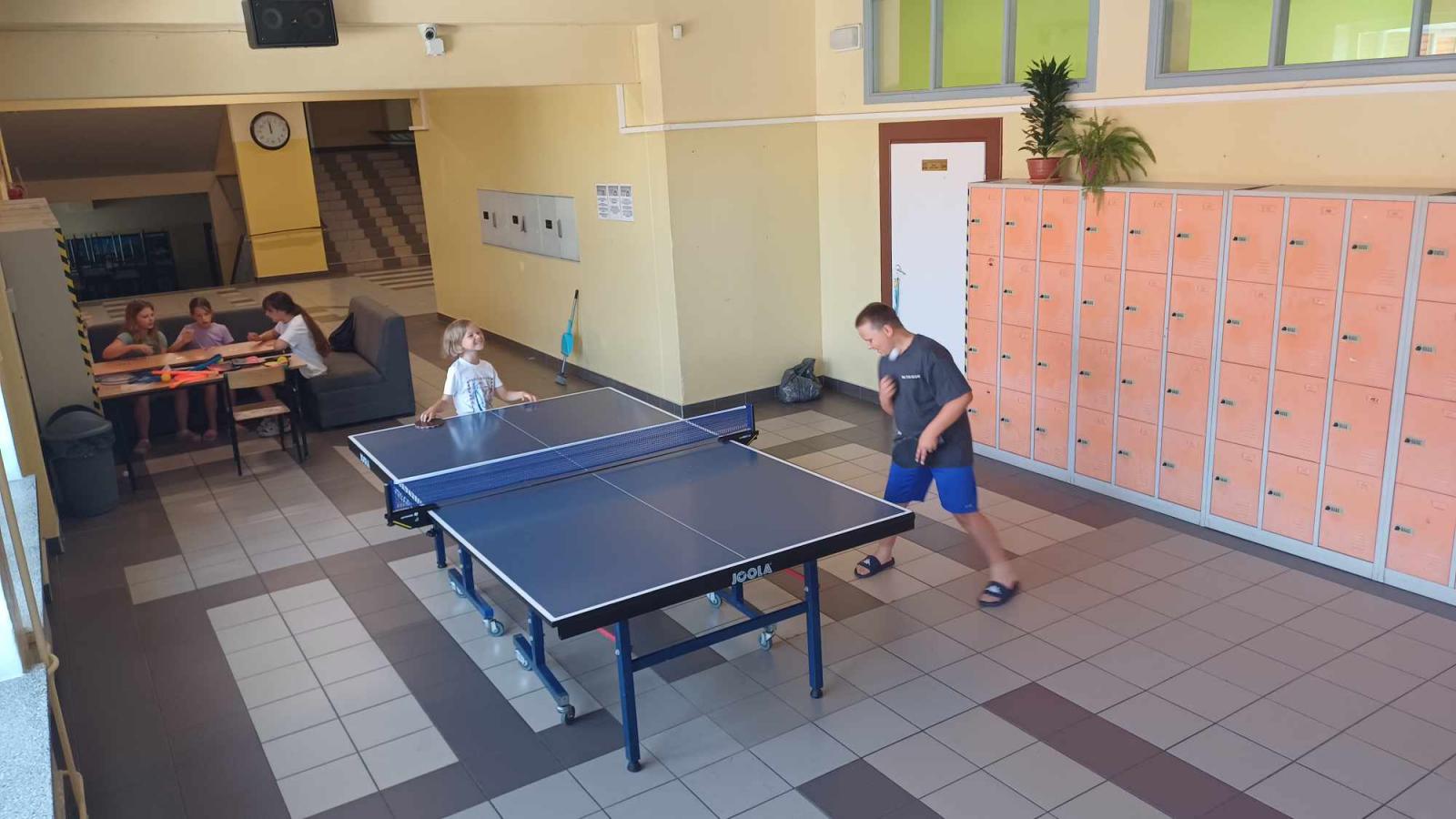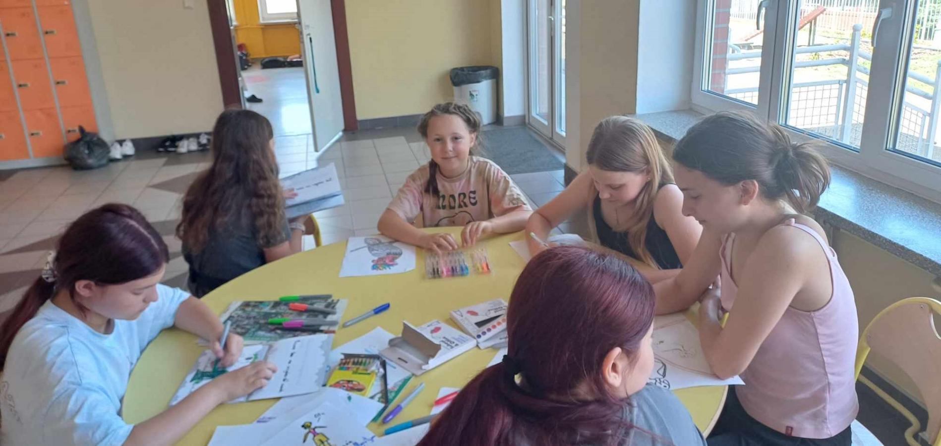 Czwartego dnia pobytu w Twardogórze grupa naszych kolonistów pozostała na miejscu. Były gry i zabawy, projekcja filmu, a po południu basen. Dzień odpoczynku w szkole