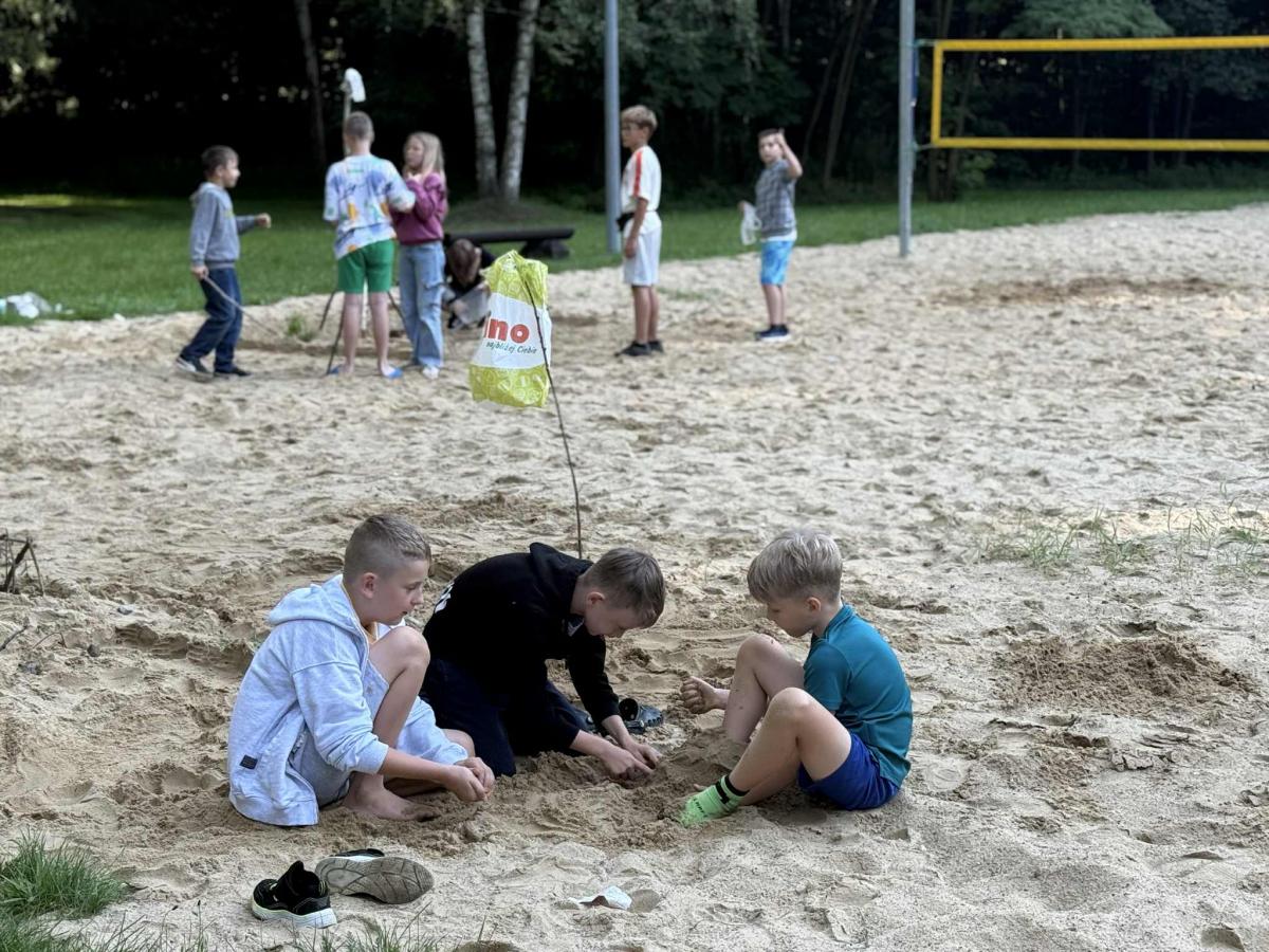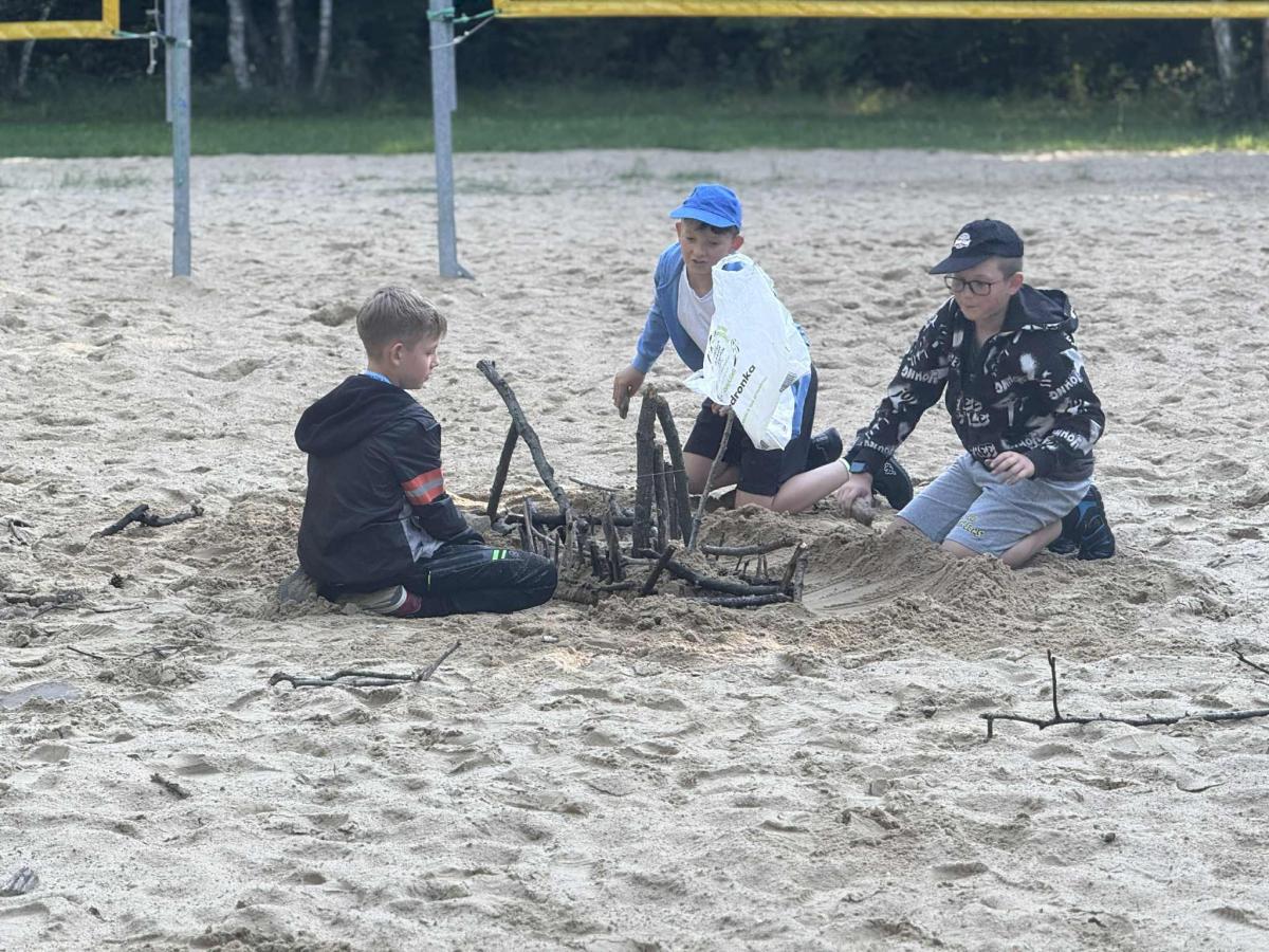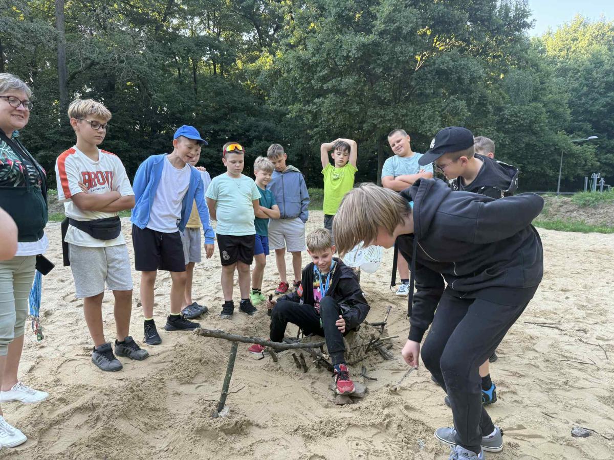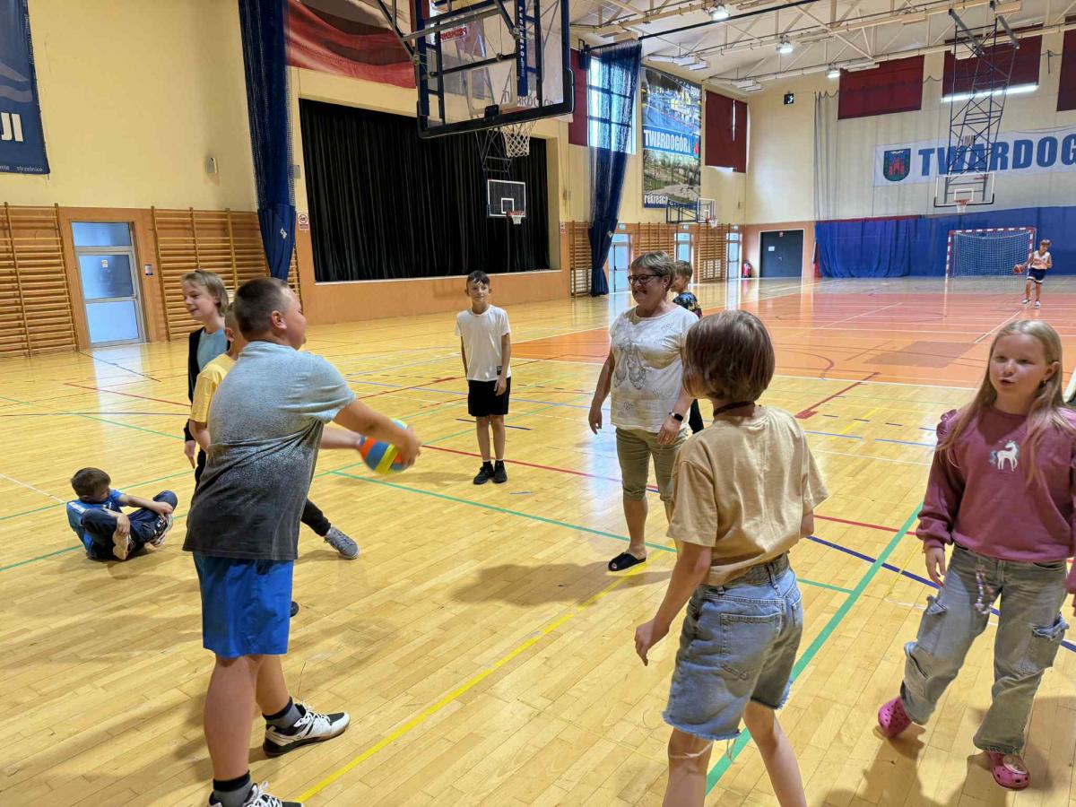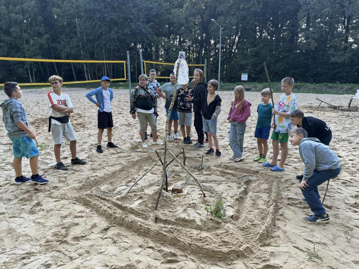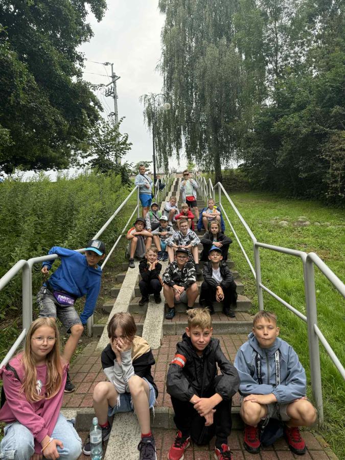 Dzień trzeci kolonii wymiennej to: gimnastyka poranna, dalszy ciąg zabaw w hali sportowej, spacer po Twardogórze z zawodami, kto szybciej na szczycie oraz konkurs zespołowy z nagrodami pt: „Historią zaklęte rzeźby nasze”.