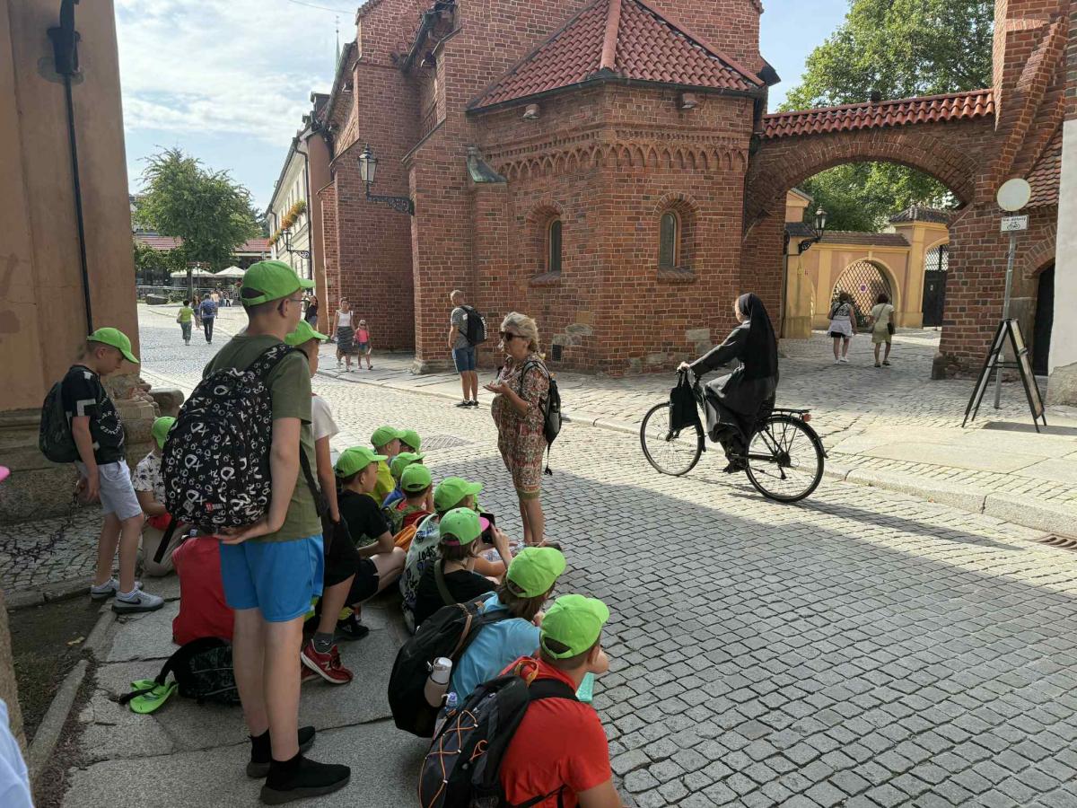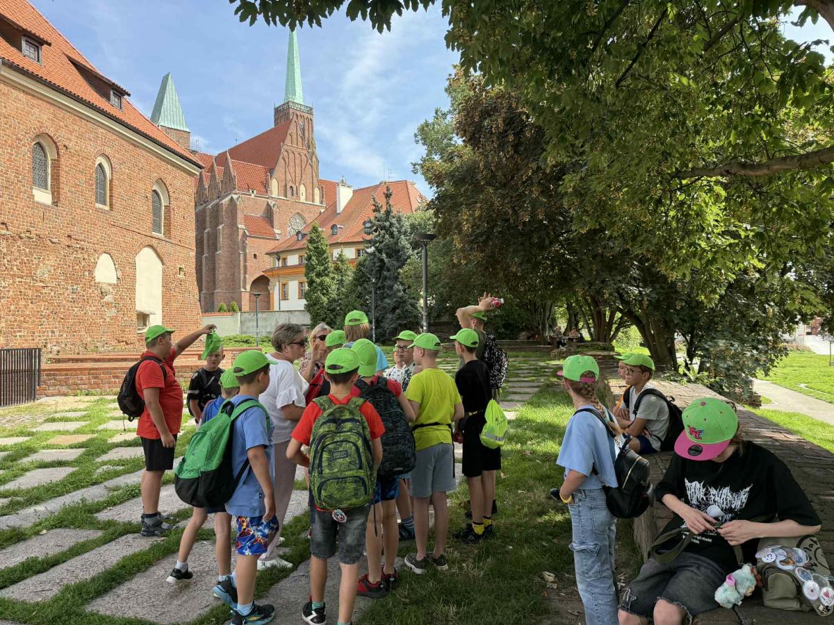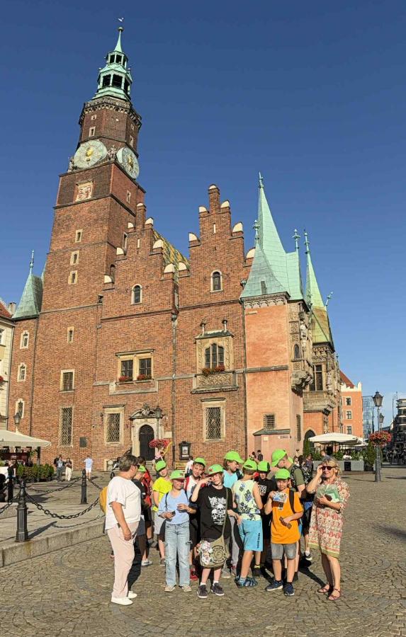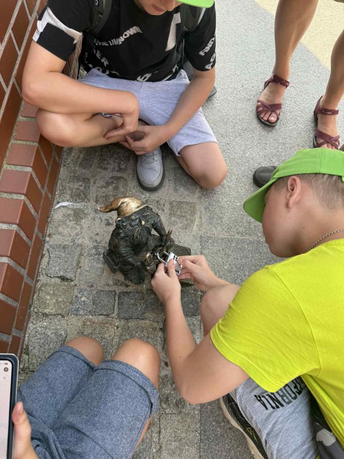 Po obiedzie ruszyliśmy do Wrocławia, a tam Pani przewodnik Maria zaprowadziła nas w kilka ciekawych miejsc takich jak: Ogród Sióstr de Notre Dame, więzienie, Biblioteka Ossolineum oraz Starówkę, gdzie na rynku zagraliśmy w grę terenową z nagrodami.