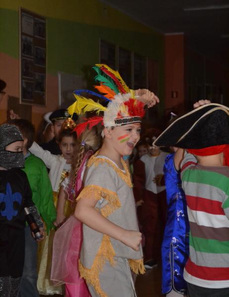 Karnawał to doskonały czas na organizowanie hucznej zabawy przy muzyce, nie tylko dla dorosłych, ale również i dla dzieci. Korzystając z tej okazji, w piątek przed feriami (30.01.2015r.), świetlica szkolna zorganizowała coroczny bal karnawałowy dla wszystkich uczniów klas I-III SP. Na ten dzień korytarz przy świetlicy zamienił się w salę balową, pięknie udekorowaną balonami, serpentynami i profesjonalnie oświetloną wspaniałymi, barwnymi „promieniami” lasera.
