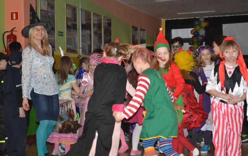Podczas imprezy i tańców w rytm porywającej, skocznej muzyki, na uczniów czekało wiele atrakcji, takich jak malowanie twarzy, konkursy i zabawy. Nauczyciele też udowodnili, że w każdym dorosłym jest coś z dziecka i świetnie bawili się w kółkach i kółeczkach ze swoimi podopiecznymi. Widać było, że ta wspólna zabawa dostarczyła wszystkim wiele radości.