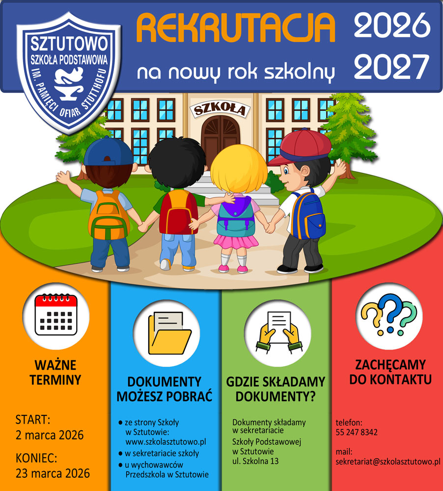 Zgłoszenia drużyny należy dokonać do 20 lutego 2026 r. korzystając z adresu mailowego: sekretariat@szkolasztutowo.pl