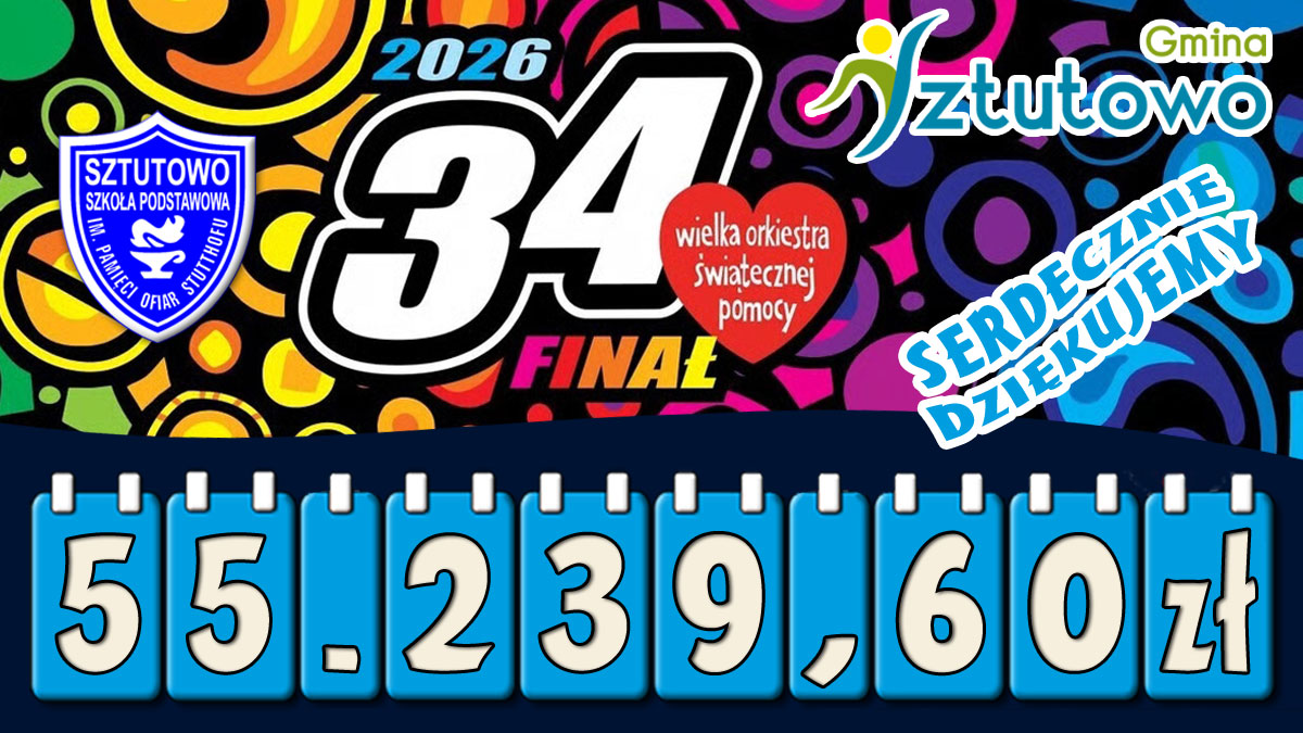 Wszystkie informacje odnośnie 34 Finału WOŚP znajdują się na Facebooku: Szkoła Podstawowa W Sztutowie oraz Sztab WOŚP Szkoła Podstawowa w Sztutowie.