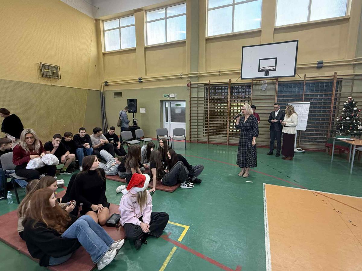 Uczniowie pierwszej klasy zaprezentowali przedstawienie pt. „Zamieszanie u św. Mikołaja”, wprowadzając społeczność szkolną w radosny, świąteczny nastrój.