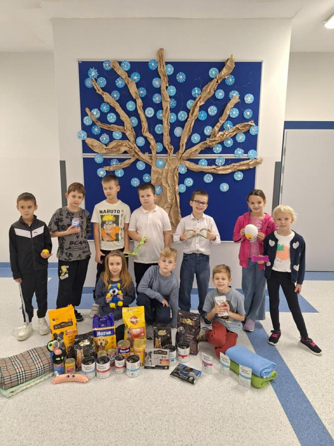 Wcześniej dzieci z wielkim zaangażowaniem przygotowały ogłoszenia oraz zorganizowały zbiórkę karmy i koców dla psów.