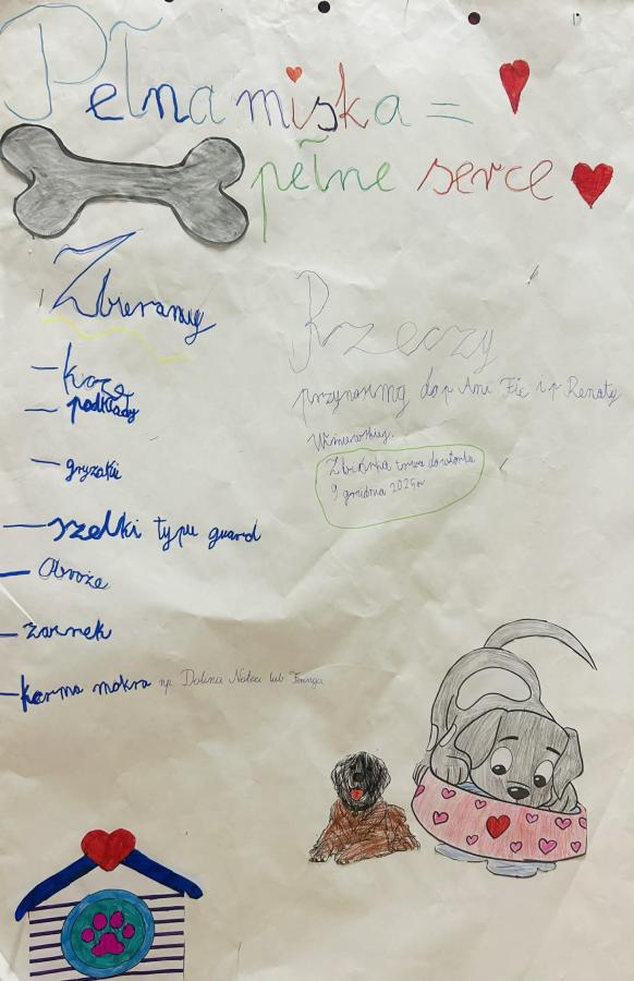 Uczniowie klas 1–2 organizują zbiórkę dla schroniska „Iskierka”.